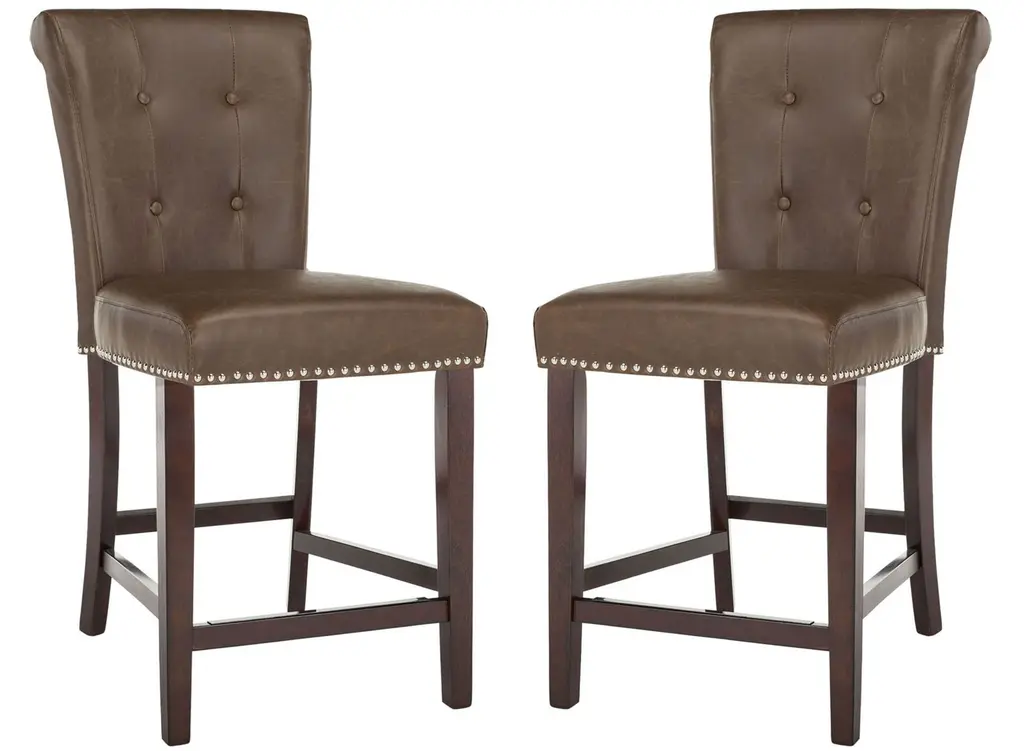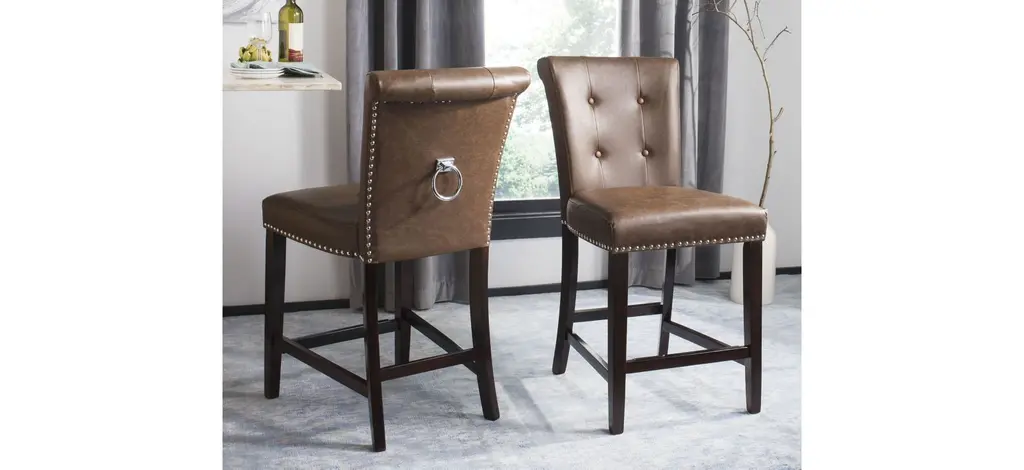 Designed for style, comfort and versatility, this modern counter stool instantly refreshes any dining area. Perfect for open kitchens or dining areas, its wood construction and tufted brown polyurethane upholstery bring a touch of fine dining to every meal.