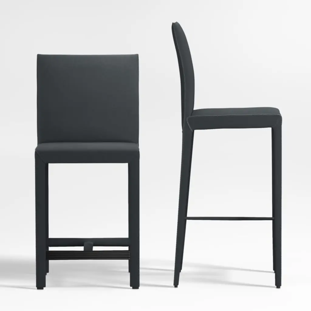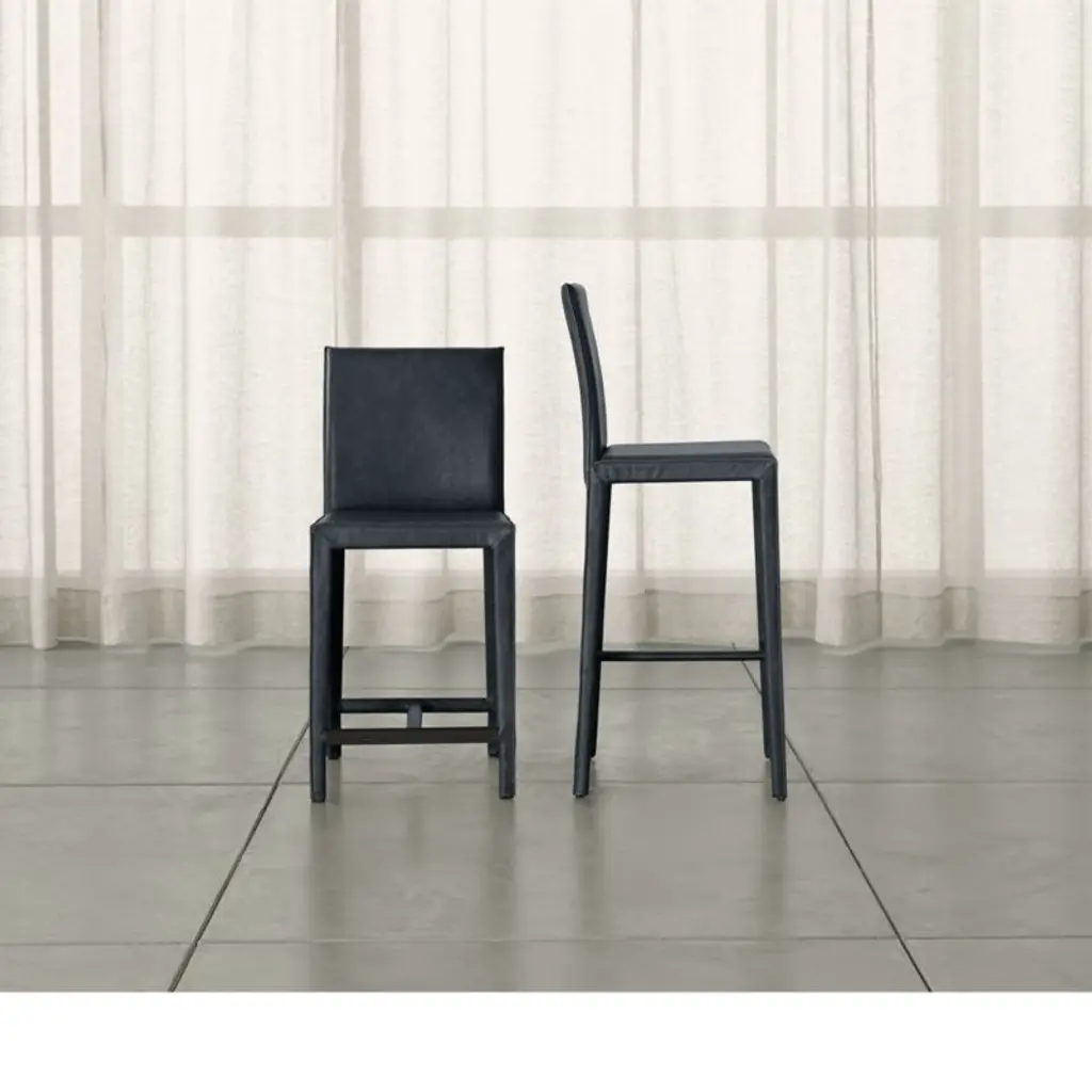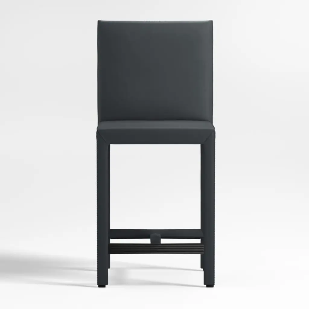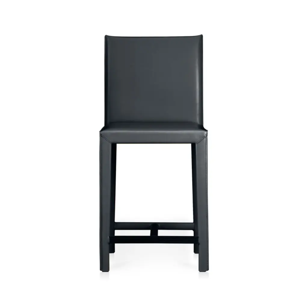Our Folio counter stool reinterprets classic Italian design with clean, Parsons-style lines and luxe leather. Fully wrapped in deep blue top-grain leather, the stool invites lingering with a comfortable foam-cushioned seat and back. Neat mitered corners, flange seaming and stitched construction contribute to Folio's groomed good looks.