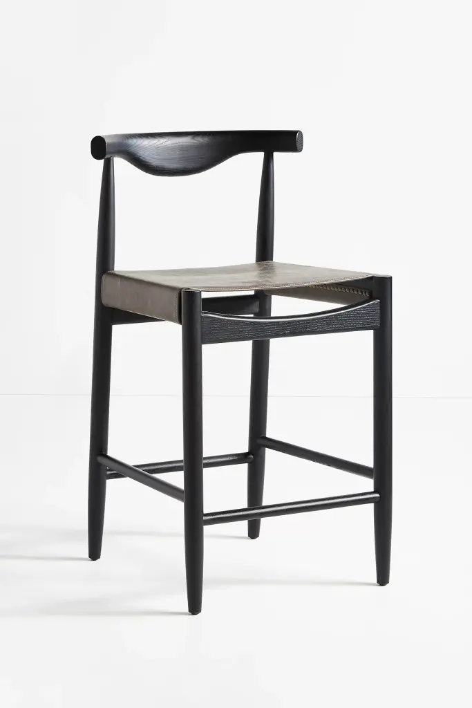 Taking cues from Danish furniture creations of the past, our Jonah counter stool exudes sculptural grace. Crafted of natural ash wood - known for its coarse, open grain - its frame features a subtly bowed back rest that's balanced by an upholstered seat of top-grain leather.For ordering assistance and more, please contact us. For aesthetic advice and tips to help decorate your space, enjoy our complimentary home styling services.
