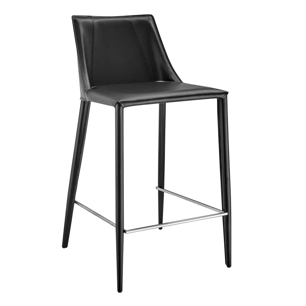 Kalle Stool - Set of 1 Regenerated leather seat, back, and legs. Powder-coated internal steel frame. Polished stainless steel footrest. Fully assembled.