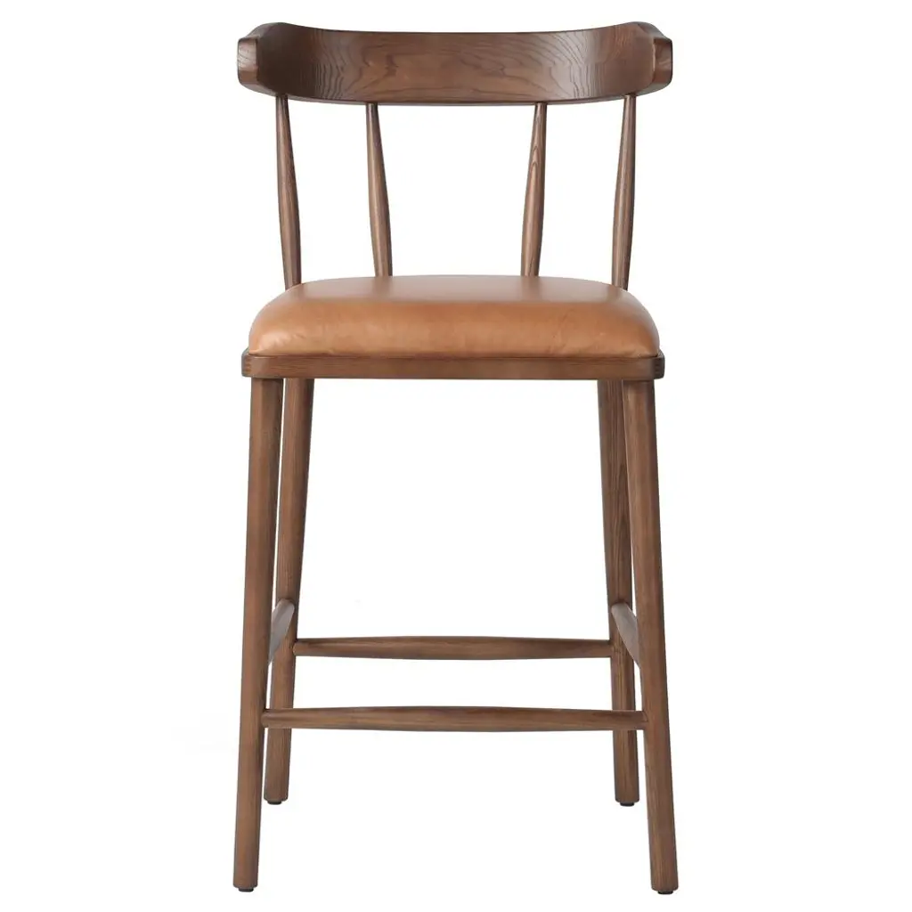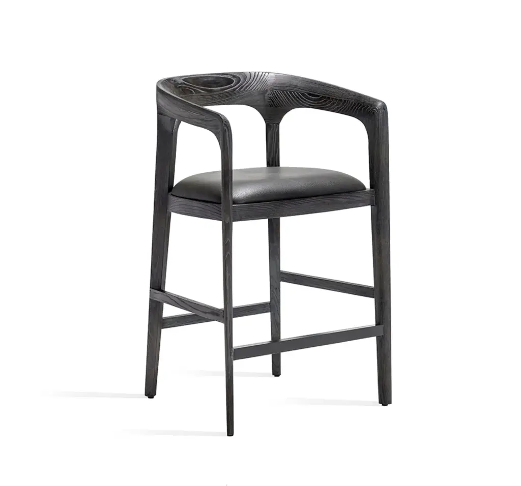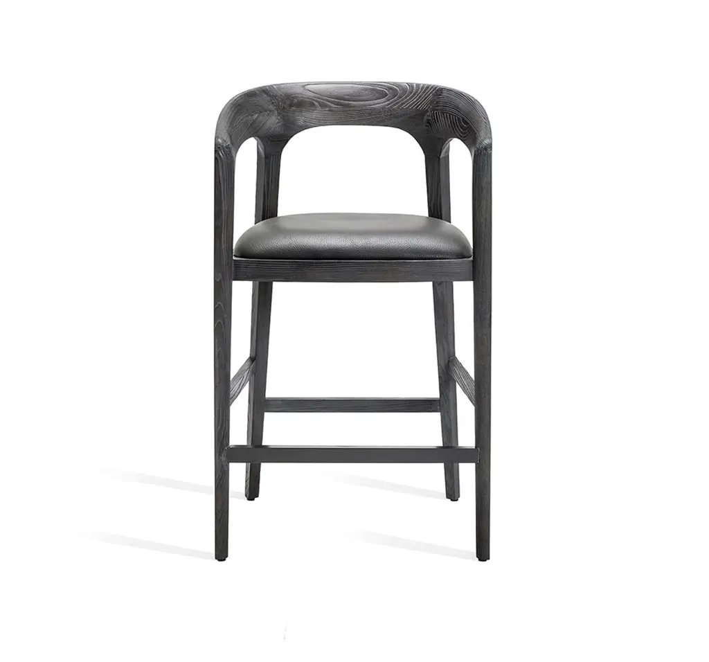 The simplicity of the Kendra Counter Stool's Danish-inspired silhouette allows the subtle beauty of a charcoal ceruse finished ash frame to speak for itself.