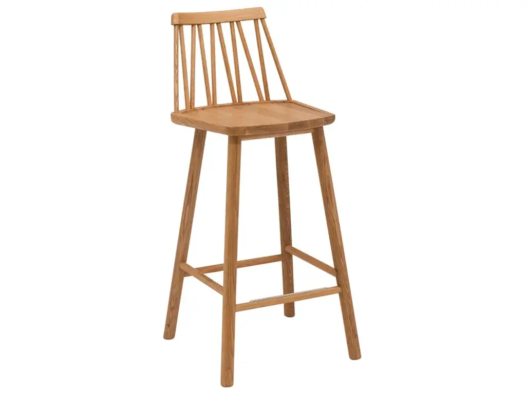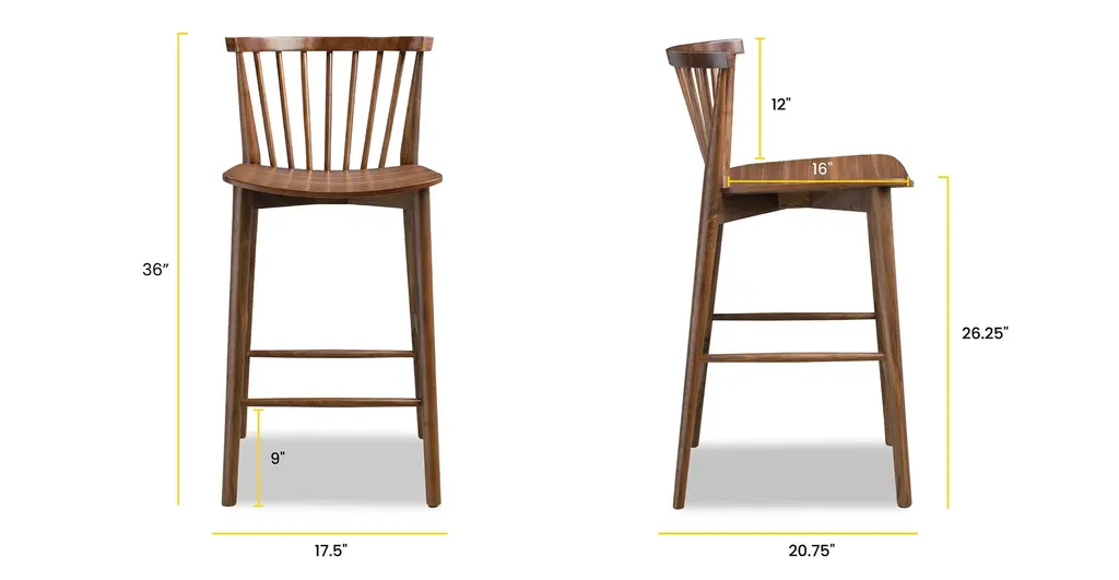 Old school style meets new school charm. Bring vintage vibes to any counter space, island or bar area with this slender bar stool crafted from solid American oak or American walnut. The modern update on classic, spindle-back design makes this piece both minimalist and versatile.