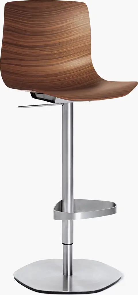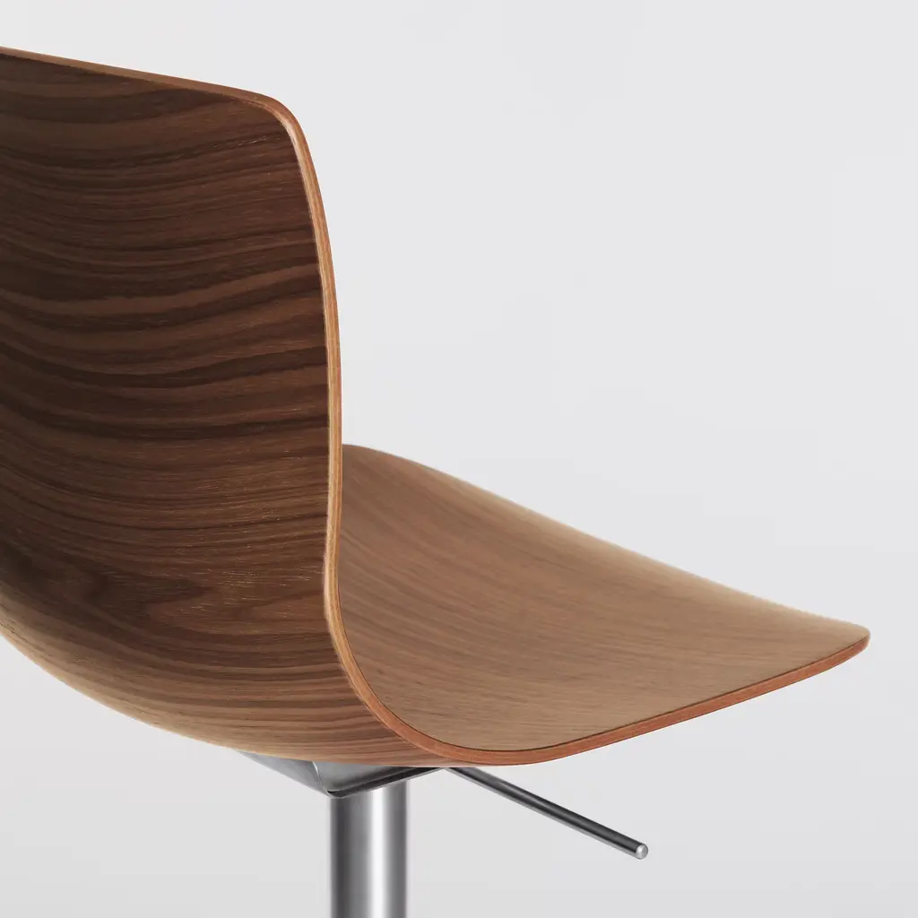 For his Loku Collection (2017), Shin Azumi took advantage of the latest molded plywood techniques, but he also exercised restraint to avoid creating something overwrought. “Some of the 3-D molded wood chairs in the market are getting too similar to plastic ones," he says. “When I designed Loku, I was careful to keep the dignity and beauty of a wooden chair." Loku features a seat-footrest assembly that rotates 360 degrees and a height adjustment lever for easy positioning. Made in Thailand.