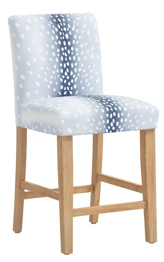 While its printed cotton upholstery in navy and white is first to draw us in, we also love this counter stool for its versatile proportions, subtly arched back, and cushy, supportive seat. Handcrafted in the USA
