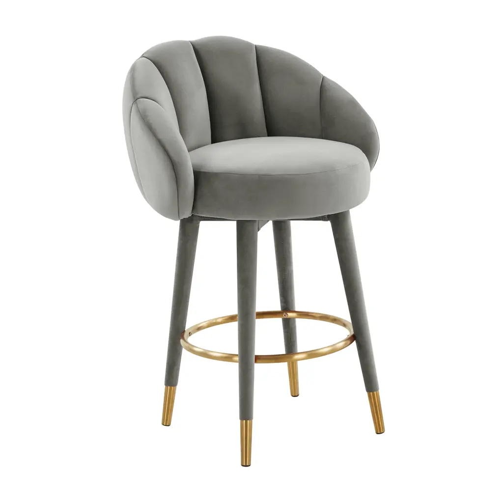 The Myra Light Grey Swivel Counter Stool with back is a modern style stool with a tall, curved design and a 360 swivel feature. Made from sumptuous velvet upholstery and sturdy wood frame, this handmade stool is perfect for a dining room setting.