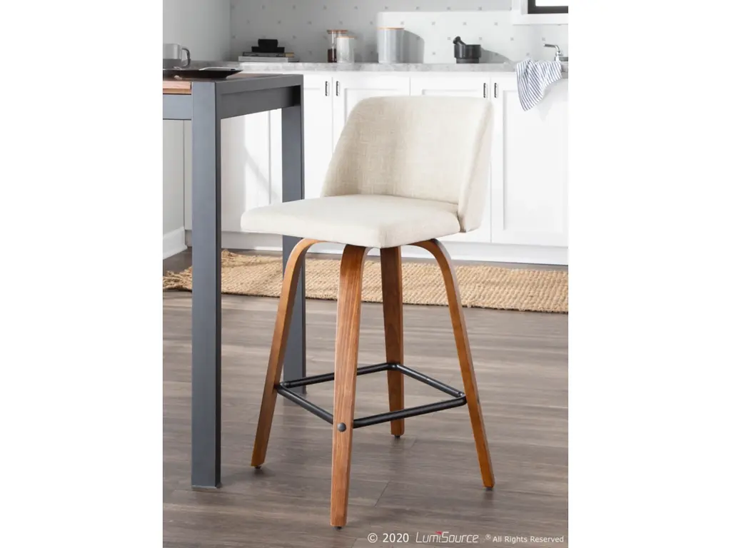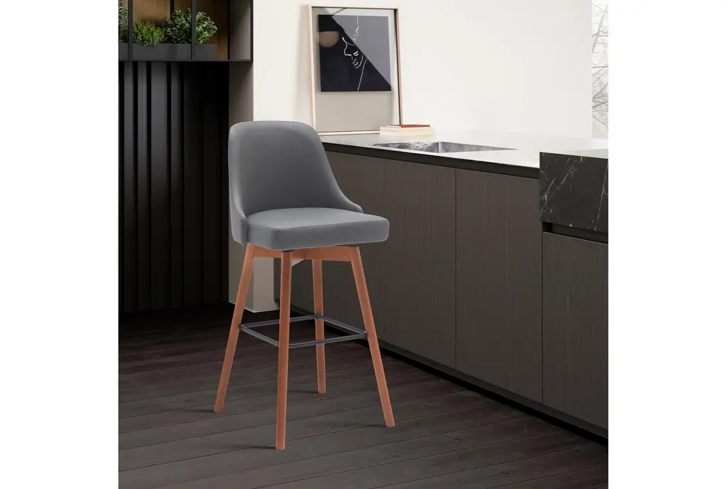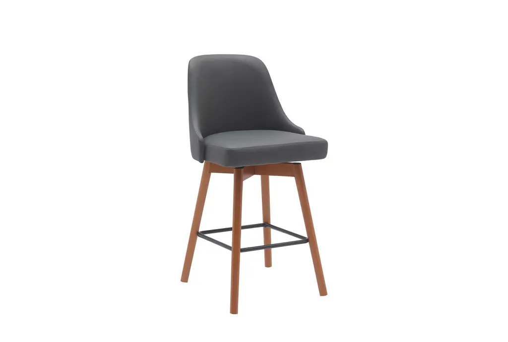 Otter 26" Swivel Walnut Wood Counter Stool In Gray Faux Leather