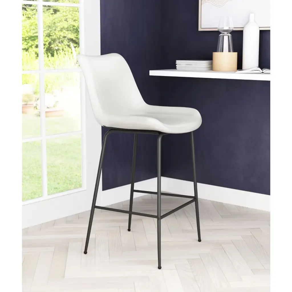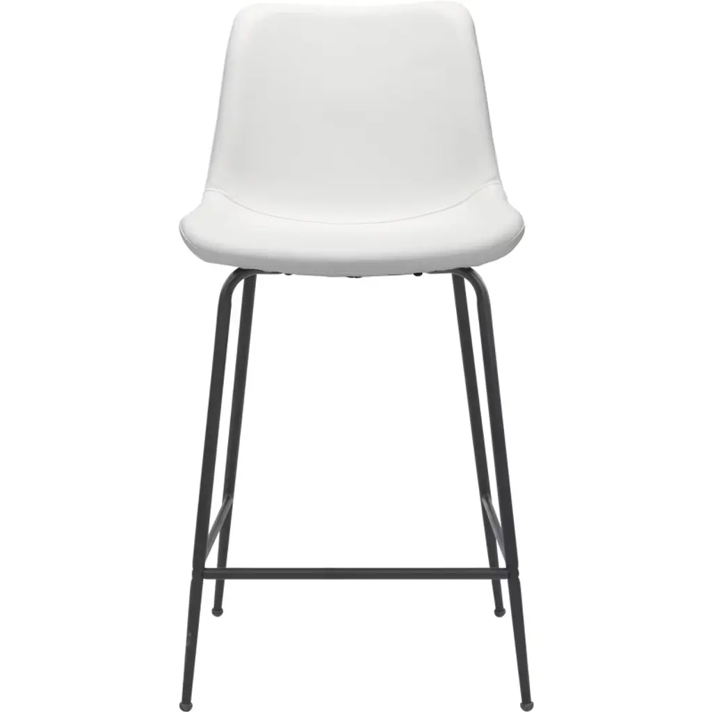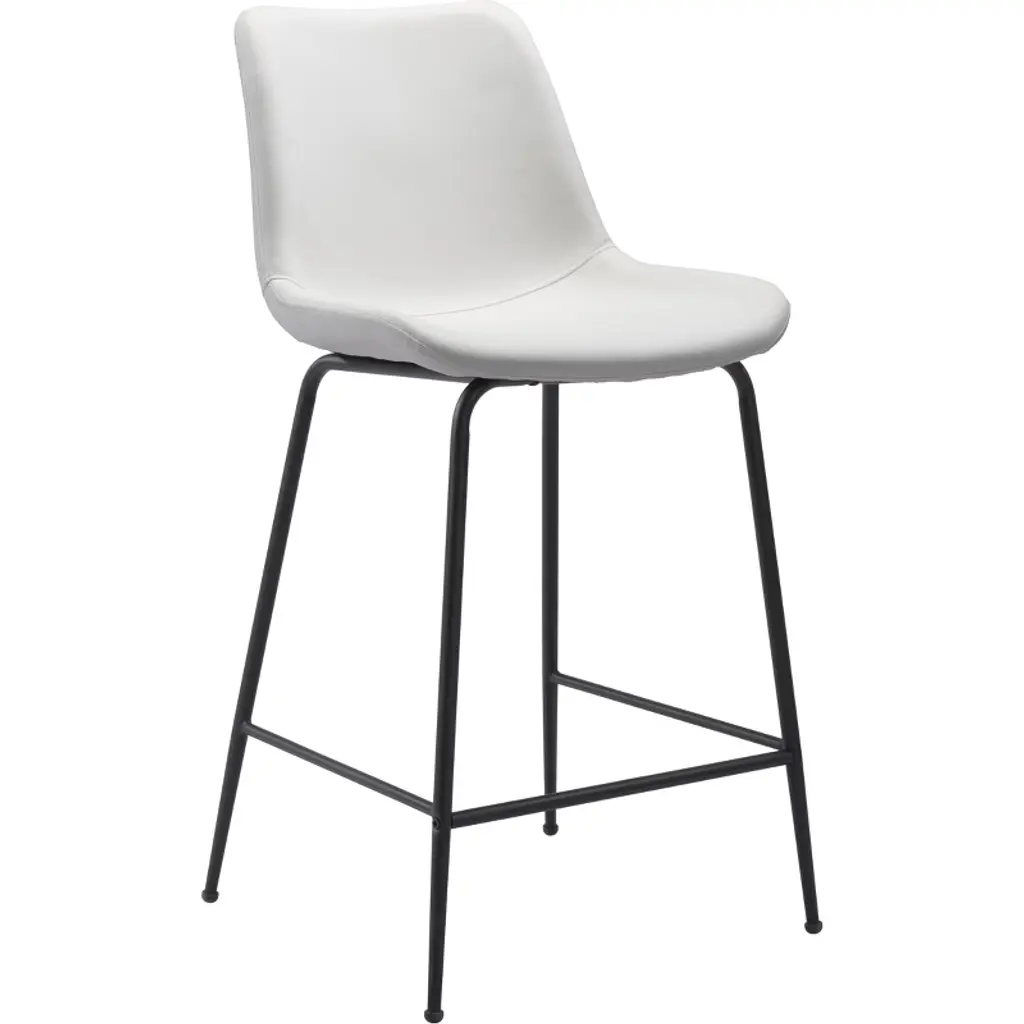 Pau Counter Height Barstool Chair White - Zm Home: Mid Century Modern, Vinyl Upholstery, Matte Black Steel Legs