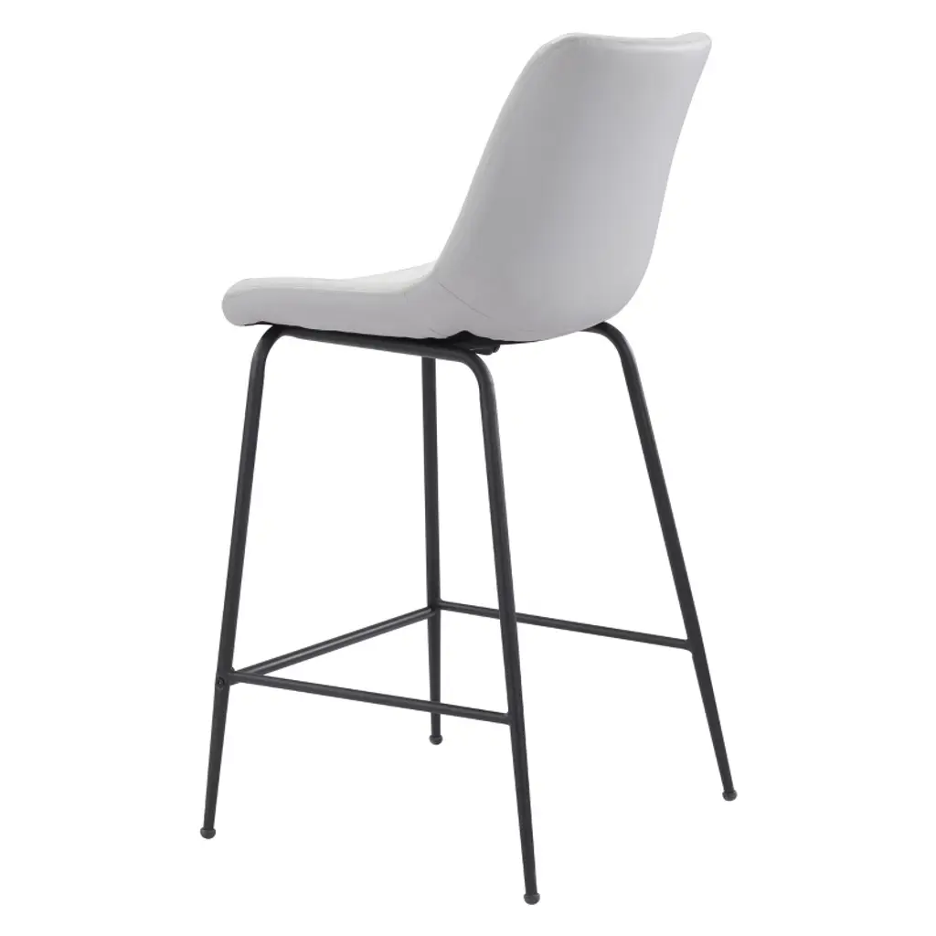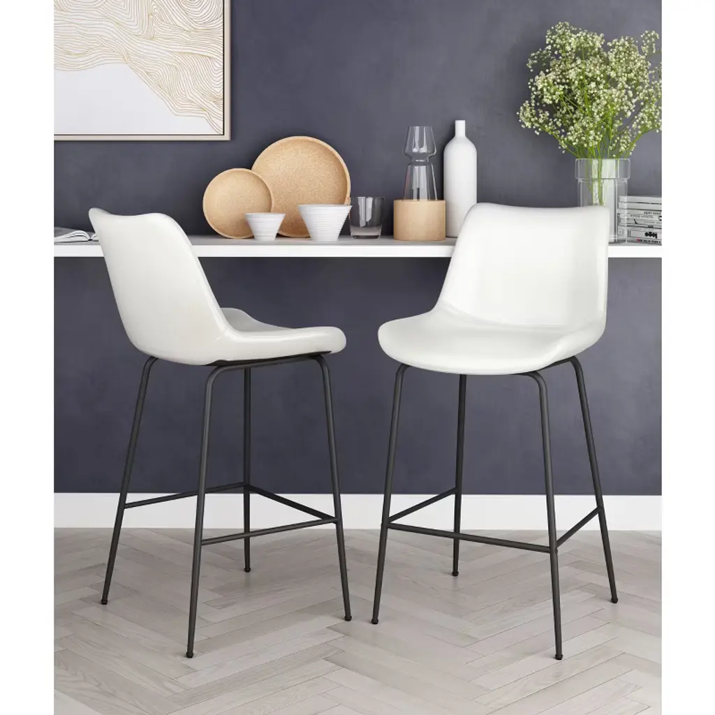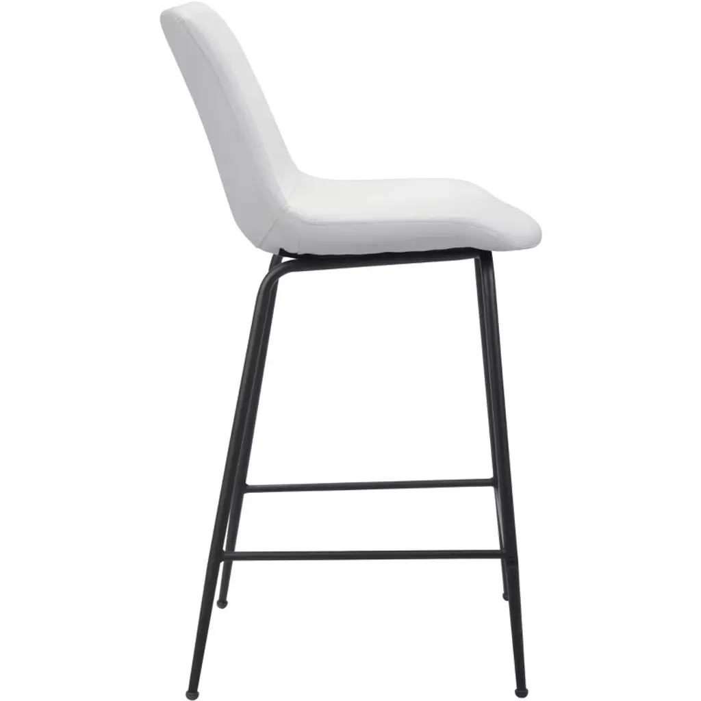 Pau Counter Height Barstool Chair White - Zm Home: Mid Century Modern, Vinyl Upholstery, Matte Black Steel Legs