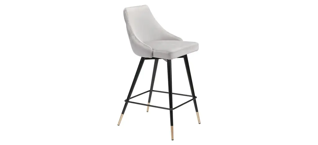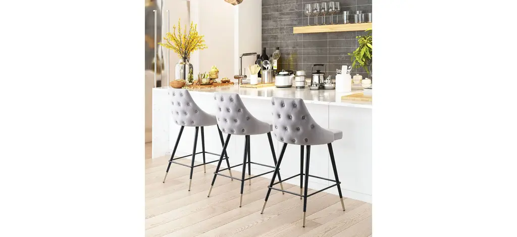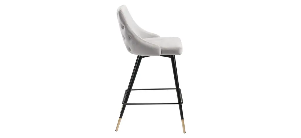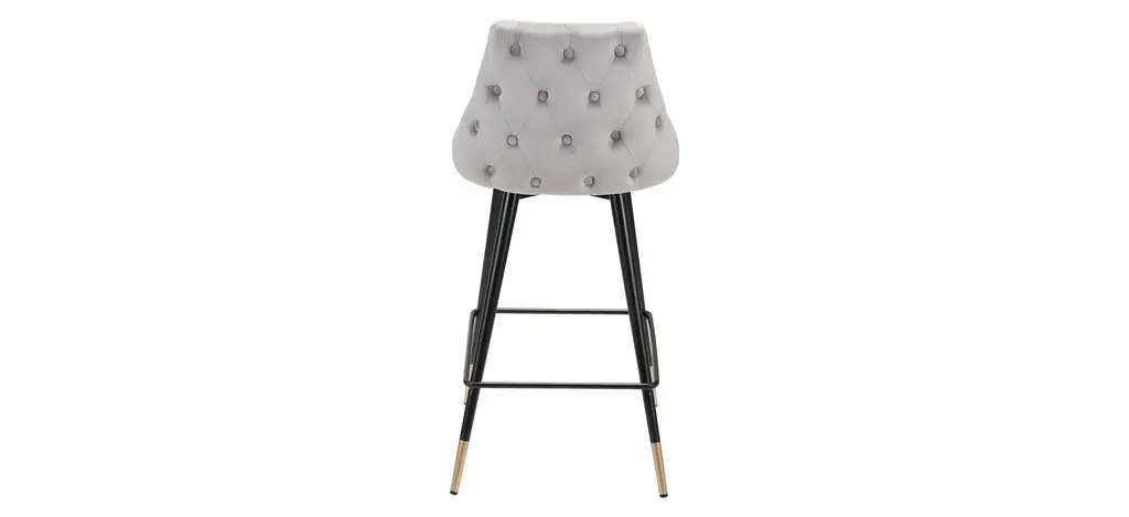 The Piccolo Counter-Height Stool has its tapered back with button tufting is easy on the eyes and gorgeous from every angle. Support slats provide a comfortable footrest while seated.
