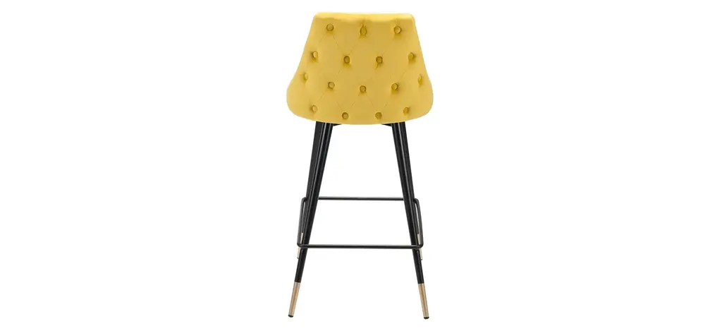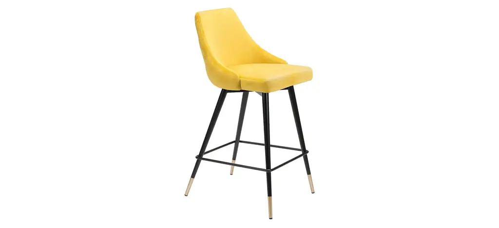The Piccolo Counter-Height Stool has its tapered back with button tufting is easy on the eyes and gorgeous from every angle. Support slats provide a comfortable footrest while seated.