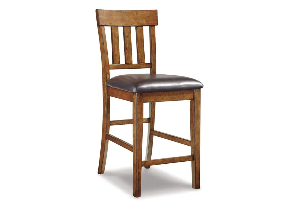 Sleek lines and comfortable cushioning combine to make the Ralene upholstered bar stool the favorite seat at the table. Its traditional shaker design is given a vintage treatment with a rustic burnished finish. Plus the faux leather upholstery easily wipes clean. Weight 20.000 lbs. (9kgs.)
