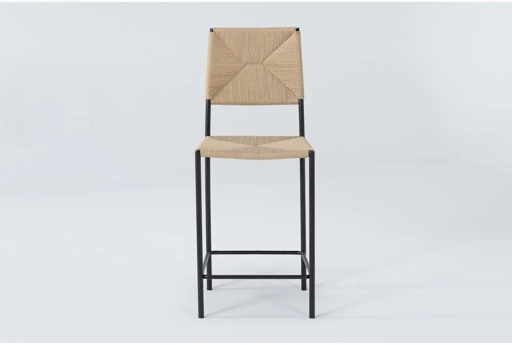 Rattan Natural Woven + Black Metal 26" Counter Height Stool With Back | Armless