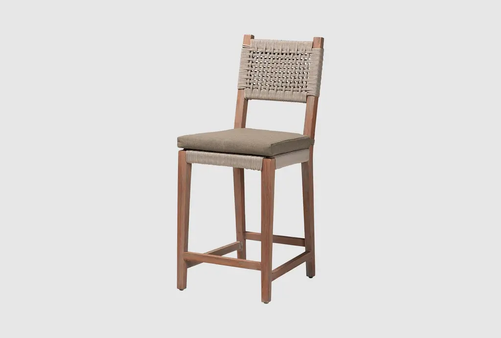 Rattan Natural Woven + Black Metal 26" Counter Height Stool With Back | Armless