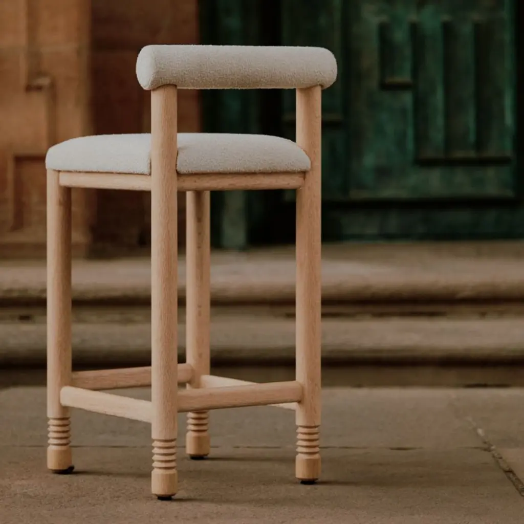 Revival Boucle Oak Counter Stool By Athena Calderone