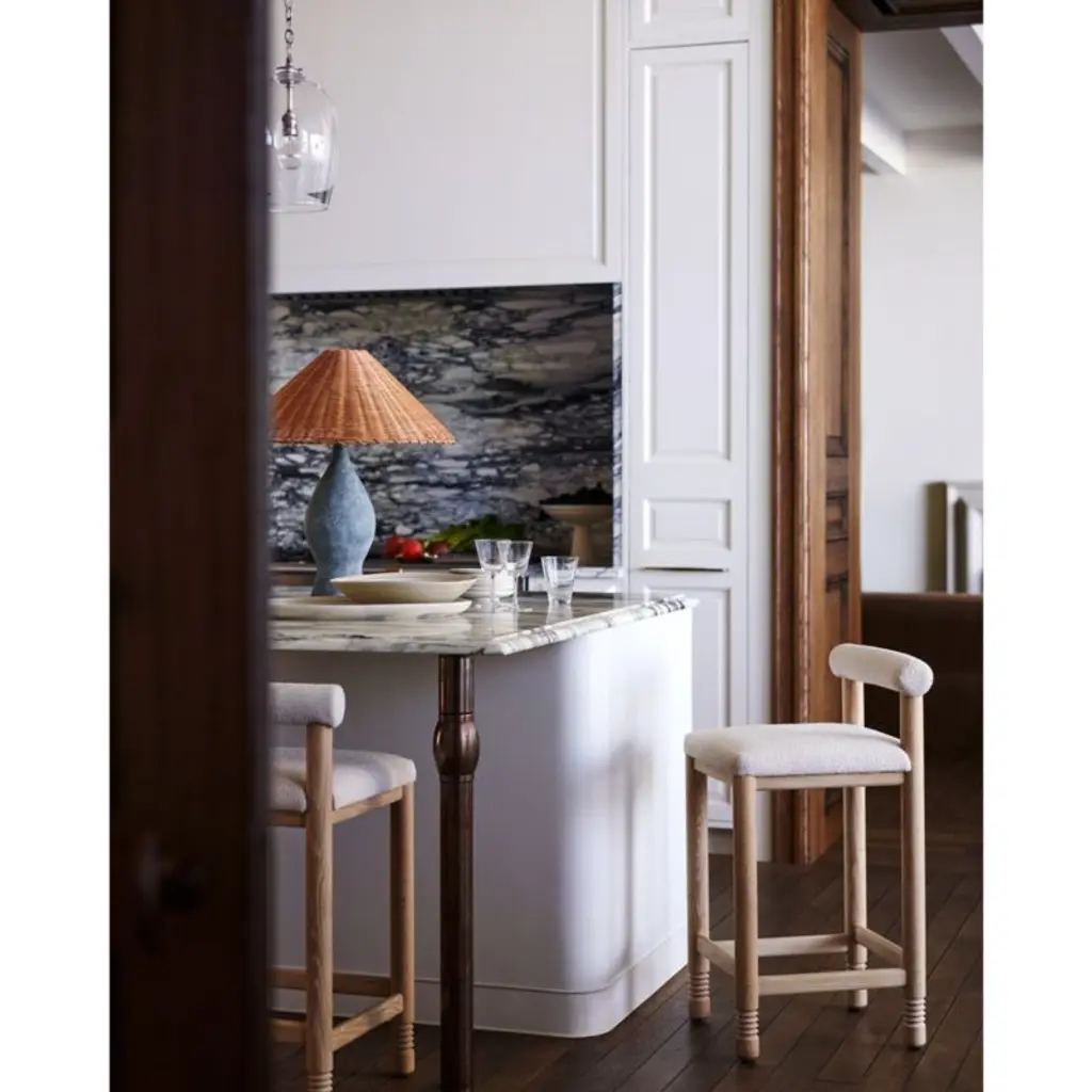 Inspired by a vintage Spanish design, our Revival counter stool brings clean lines and comfort to kitchen-island and high-table dining. Made of solid oak with a light ceruse finish, the stool stands tall on tubular legs accented just above the feet with linear ring carving. A plushly padded seat and cushioned bolster back are covered with an ivory boucle fabric that keeps the look warm and approachable with just the right amount of textural contrast.We've partnered with bestselling author, interior designer and EyeSwoon founder Athena Calderone to bring you a collection of designs for meaningful, beautiful modern living. Inspired by ancient forms and European finds, Crate x Athena fine-tunes scale, materials and comfort to fit seamlessly into your home.