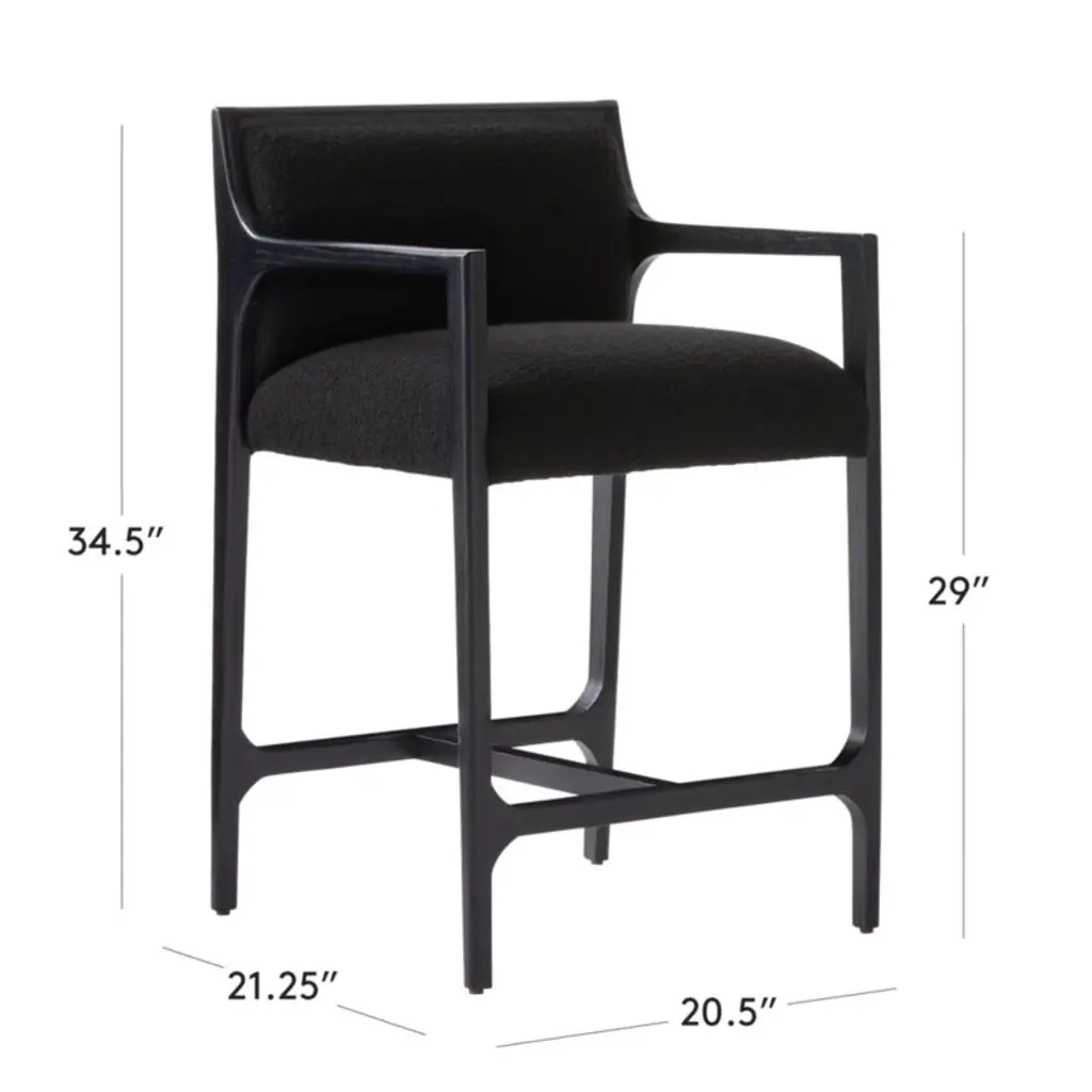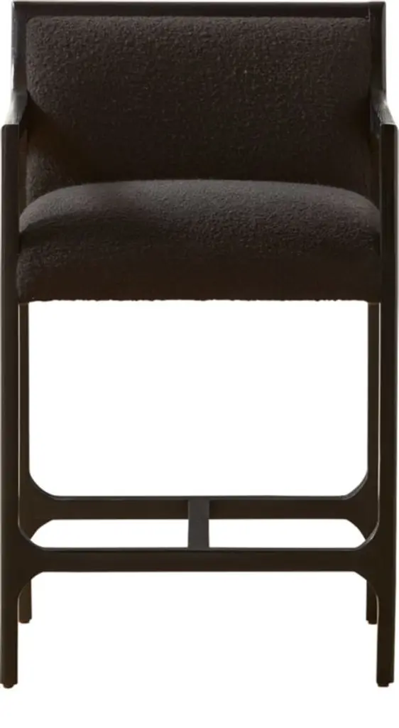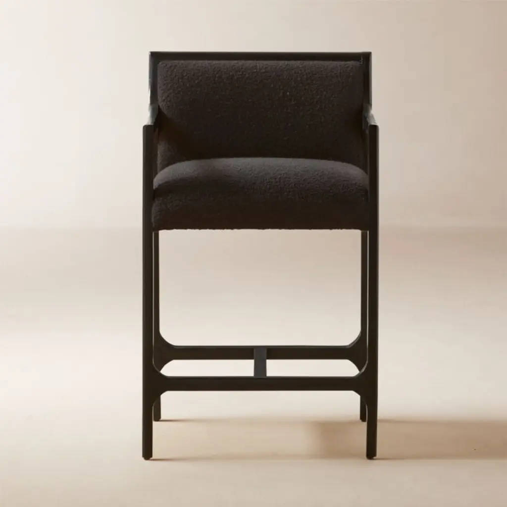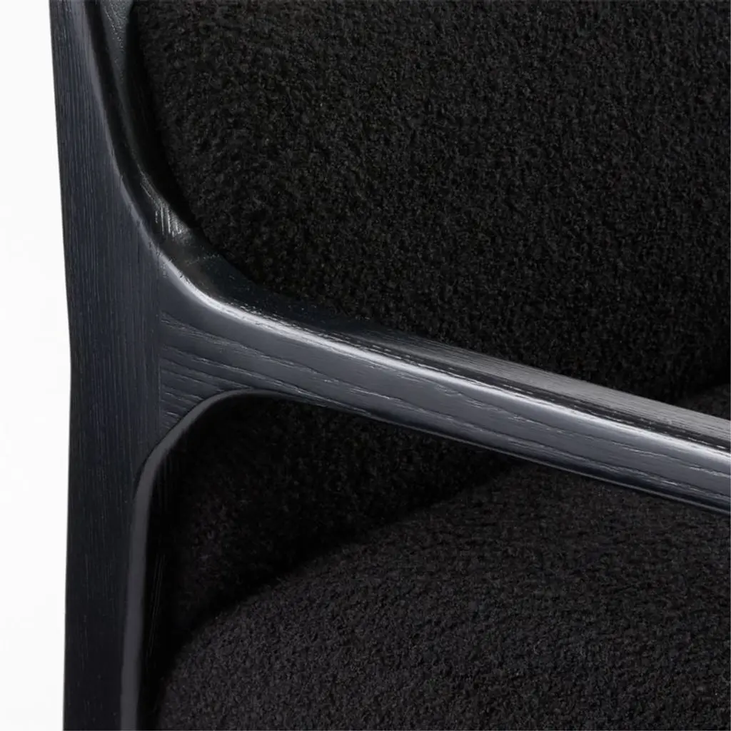 Barcelona-based Mermelada Estudio combines a classic silhouette with textured boucle for a clean look that fits any design aesthetic. Ebonized wood frame supports a black boucle seat, adding texture and dimension to the monochromatic design. CB2 exclusive.