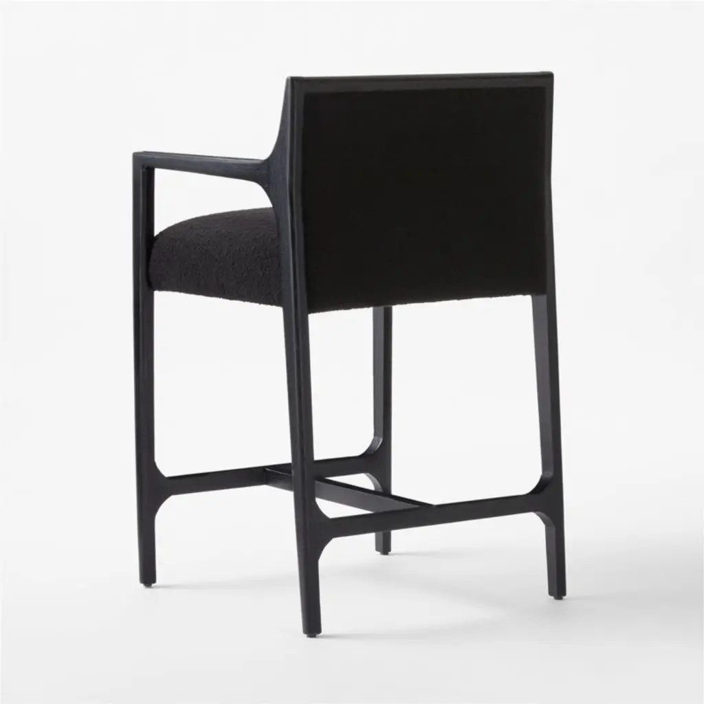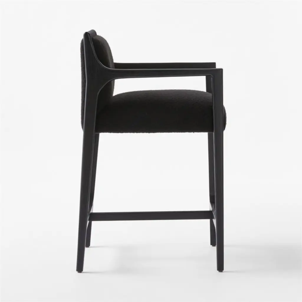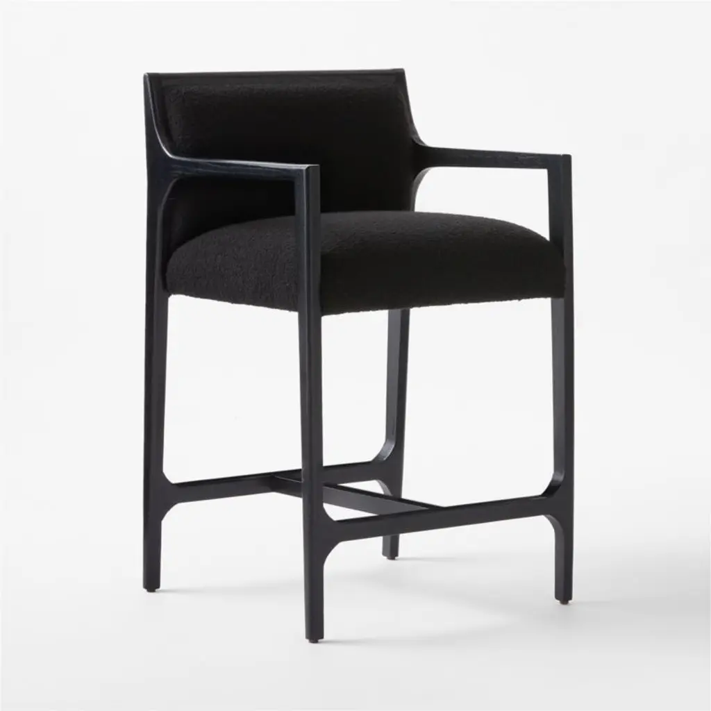 Barcelona-based Mermelada Estudio combines a classic silhouette with textured boucle for a clean look that fits any design aesthetic. Ebonized wood frame supports a black boucle seat, adding texture and dimension to the monochromatic design. CB2 exclusive.