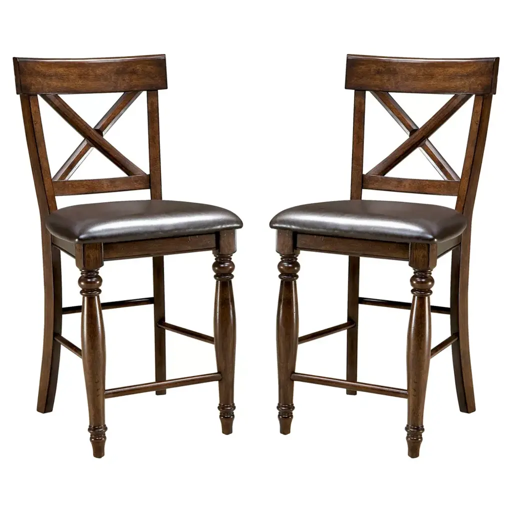 Set Of 2 24" Kingston X Back Counter Height Barstools With Faux Leather Seat Dark Raisin Finish - Intercon: Hardwood Frame