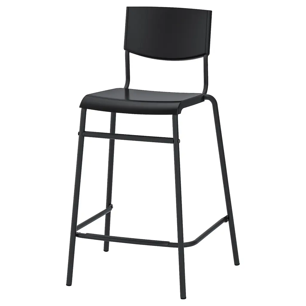 STIG Bar stool with backrest - black/black 24 3/4 ". Stackable, so you can keep several on hand without taking up more space than one bar stool. Comfy footrest enables a relaxed sitting posture. Suitable for bar table and counter heights 34-36".