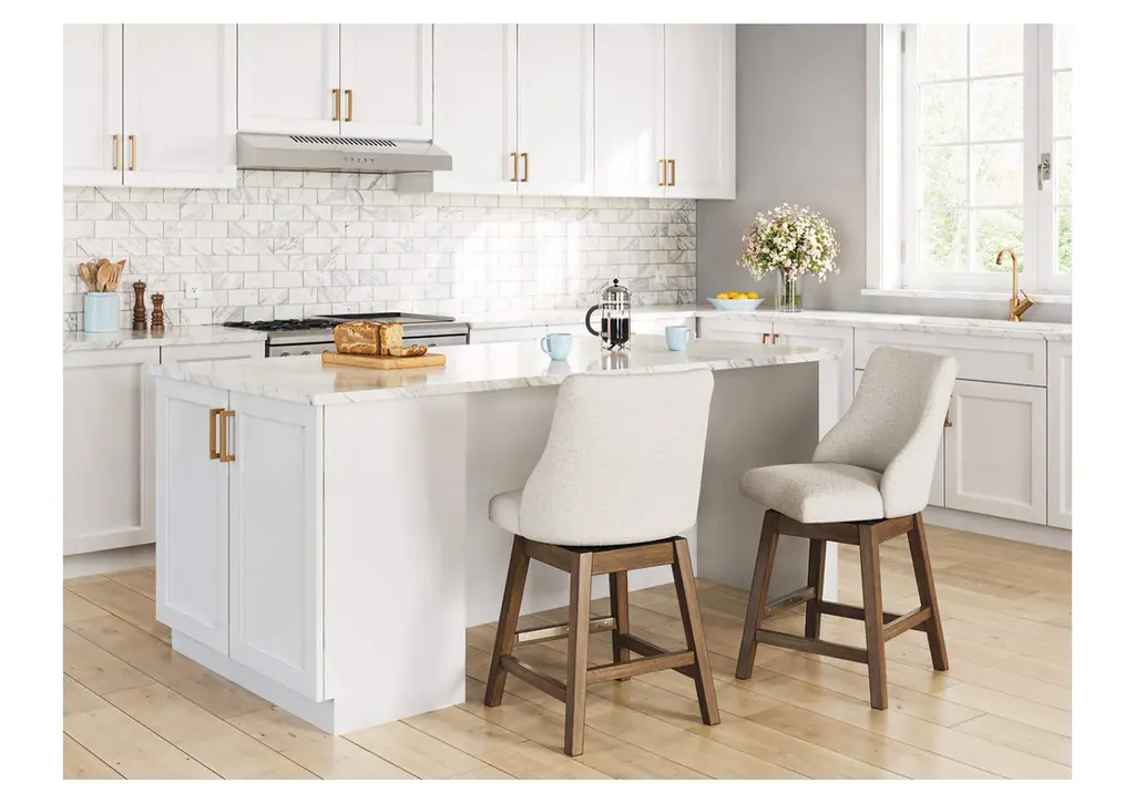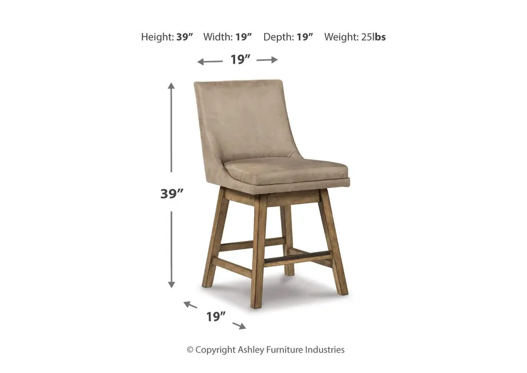 The Tallenger barstool invites you to take contemporary modern style for a spin. Comfortably cushioned seat, self-returning swivel and contoured back make it beautifully in tune with your needs. Luxurious faux leather upholstery is a sensational touch. Weight 28.500 lbs. (12.83kgs.)