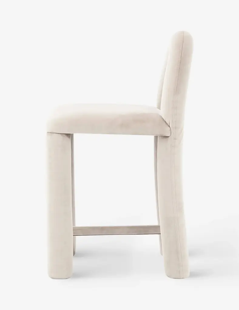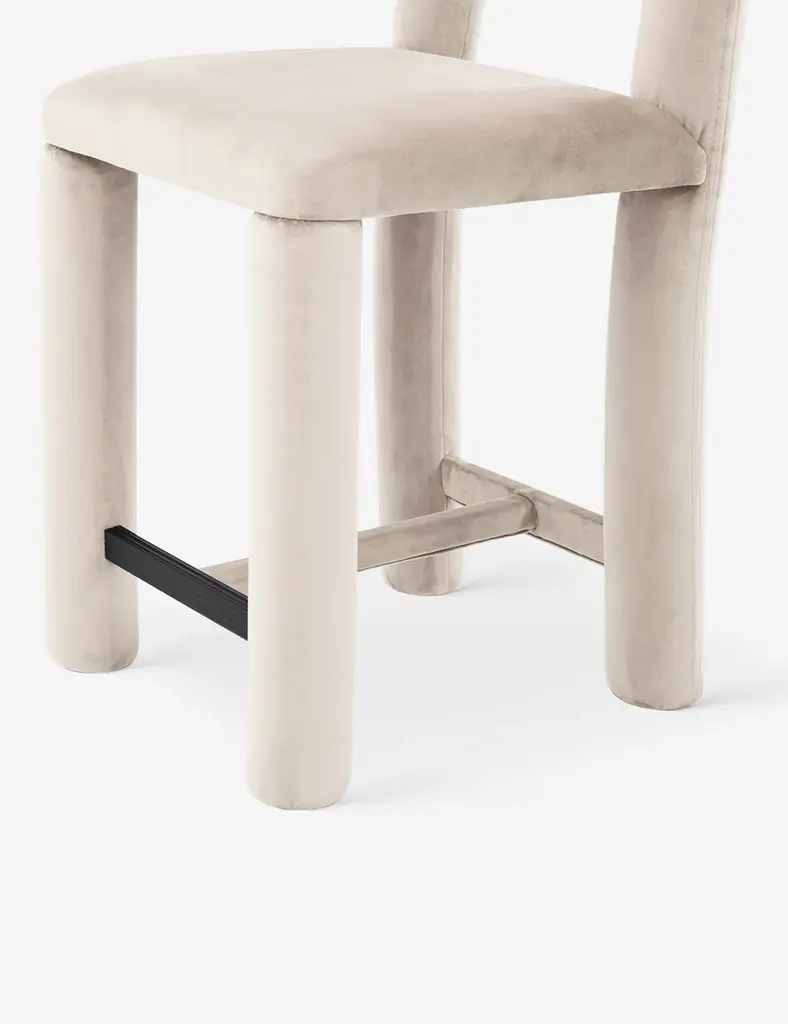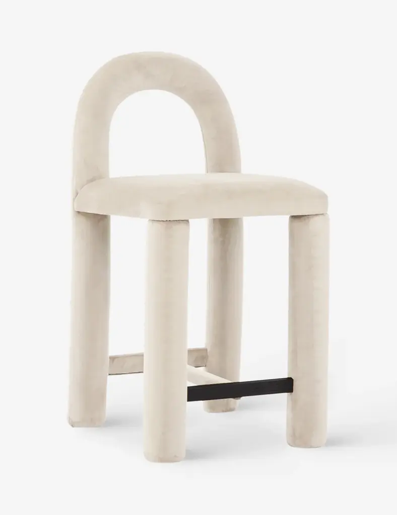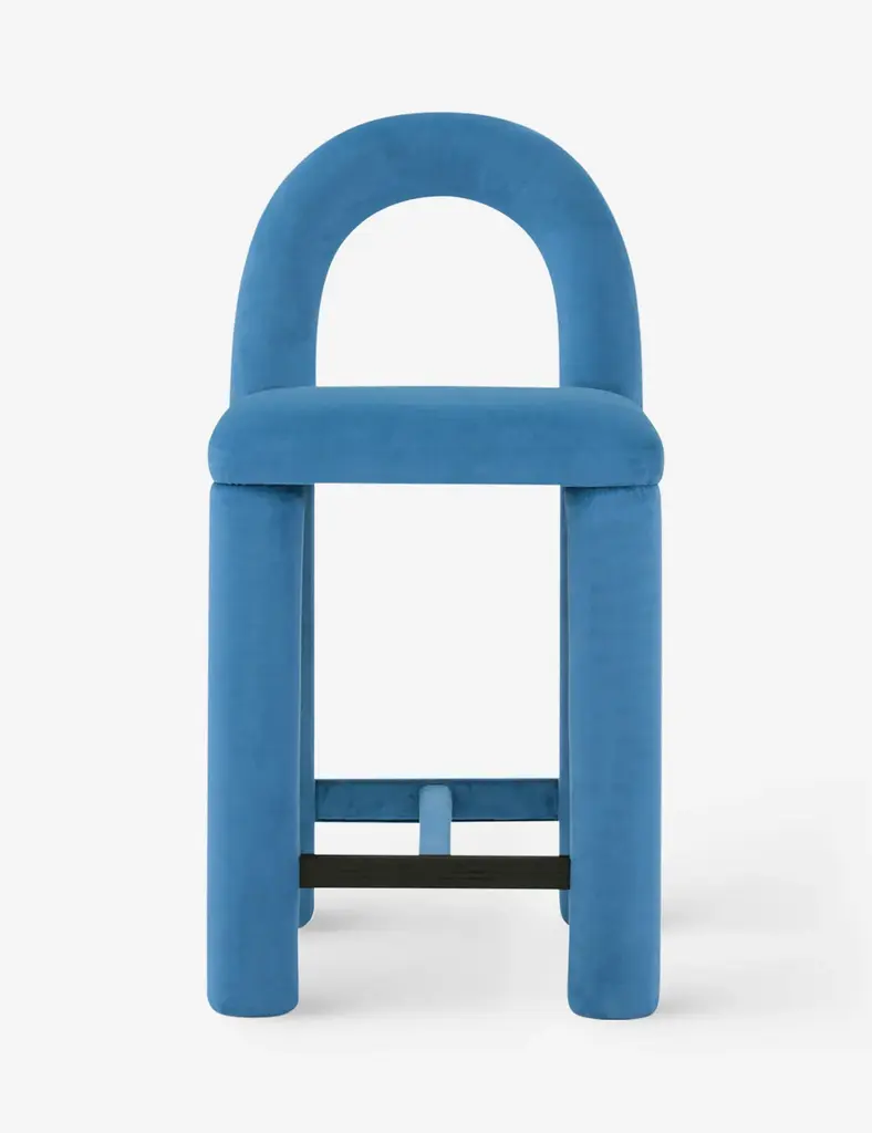 Furniture design studio Sun at Six seeks to help create open, natural spaces with their line of minimal furniture. Softly sculpted lines and a plush upholstered frame bring fresh impact to the retro design of this tone-setting counter-height stool. The metal footrest adds a touch of contrast for lasting style, while the velvet upholstery is available in a modern palette that you can tailor to your space or mix and match for a splash of color at your counter or bar.
