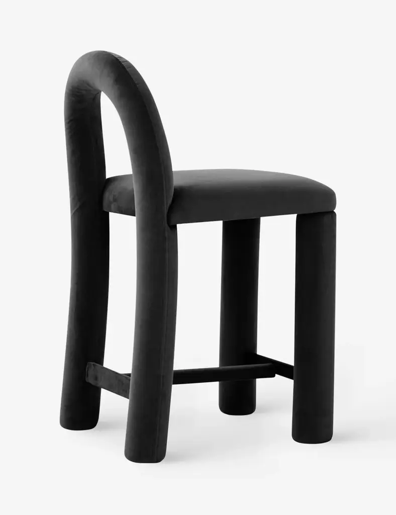 Furniture design studio Sun at Six seeks to help create open, natural spaces with their line of minimal furniture. Softly sculpted lines and a plush upholstered frame bring fresh impact to the retro design of this tone-setting counter-height stool. The metal footrest adds a touch of contrast for lasting style, while the velvet upholstery is available in a modern palette that you can tailor to your space or mix and match for a splash of color at your counter or bar.