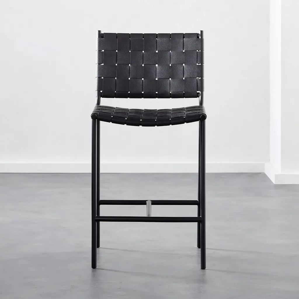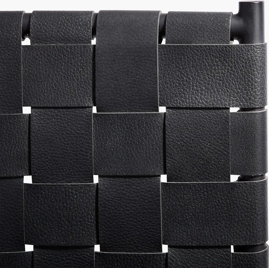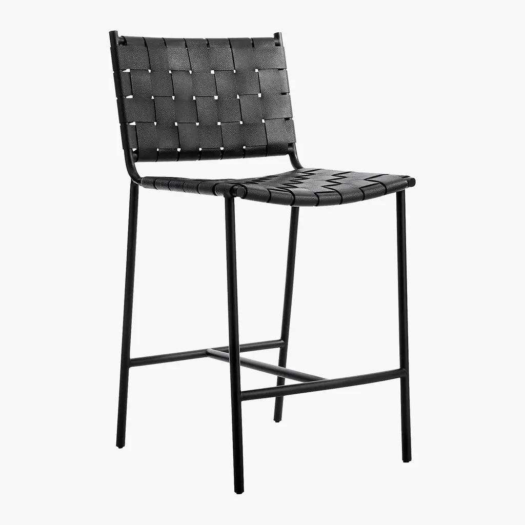 Laid-back design recalls classic midcentury style. Designed by Mermelada Estudio, the silhouette was fine-tuned and rich black leather was woven for the seat and back. Due to differences in all-natural leather, each stool will be unique. Learn about Mermelada Estudio on our blog. CB2 exclusive.