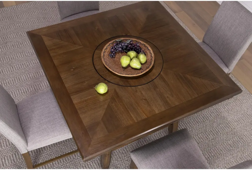 The new trend in entertaining, counter height dining reaches perfect elevation with our Hyland collection. Lofty and sturdy, this counter height kitchen table features a built-in Lazy Susan for easy serving and a bottom shelf for convenient storing. You and your guests will love eating, drinking and gathering here.
