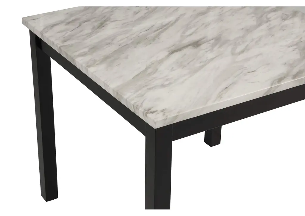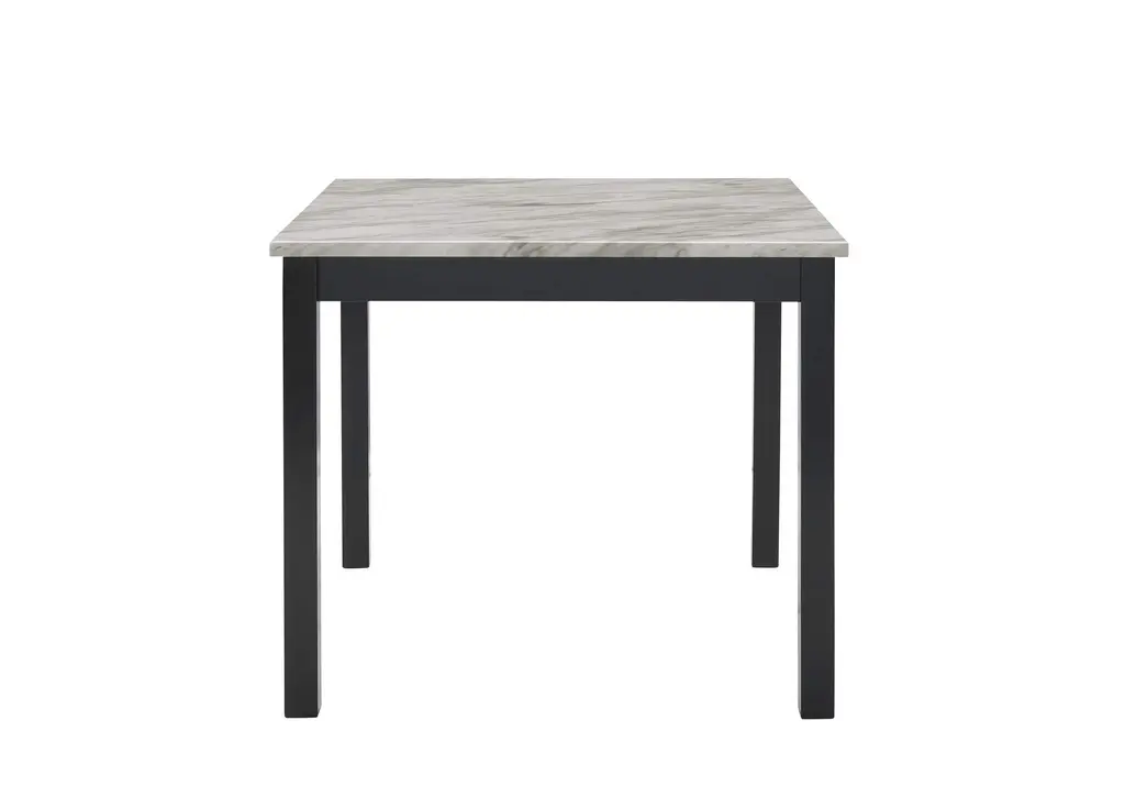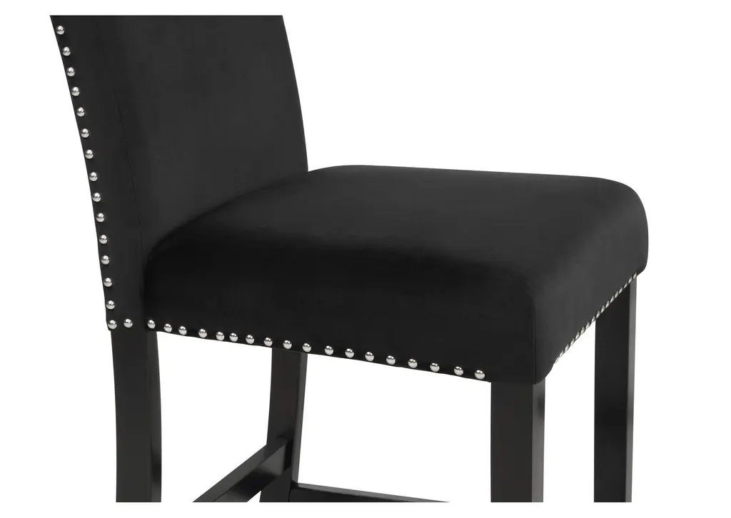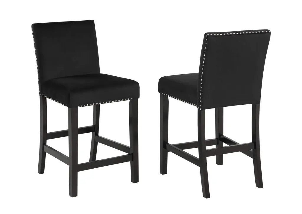 Make a bold statement in your dining space with this elegant counter-height set, where modern sophistication meets everyday functionality. The sleek, faux-marble tabletop exudes luxury while providing a durable and easy-to-clean surface for meals, gatherings, and more. Supported by a sturdy black frame, it offers a striking contrast that enhances its contemporary appeal. The plush, velvet-upholstered chairs bring comfort and style together, featuring chic nailhead trim for a refined touch. Perfect for casual dinners or special occasions, this set transforms any dining area into a stylish and inviting space. Weight 149.900 lbs. (67.46kgs.)