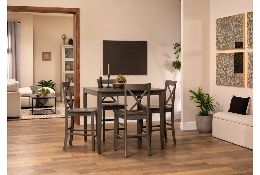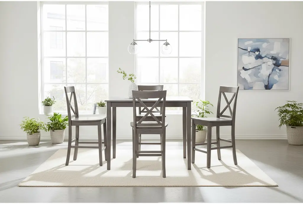Percy Grey Square Wood 42" Kitchen Counter Height With X Back Chairs Set For 4
