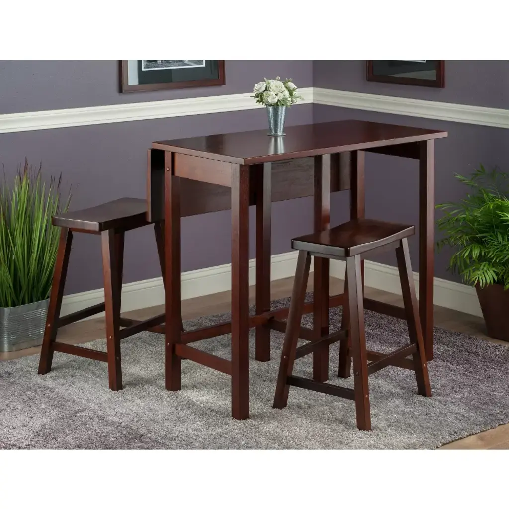 3Pc 24" Lynnwood High Drop Leaf Counter Height Dining Set, Saddle Stools - Winsome: Space-saving, Seats 4