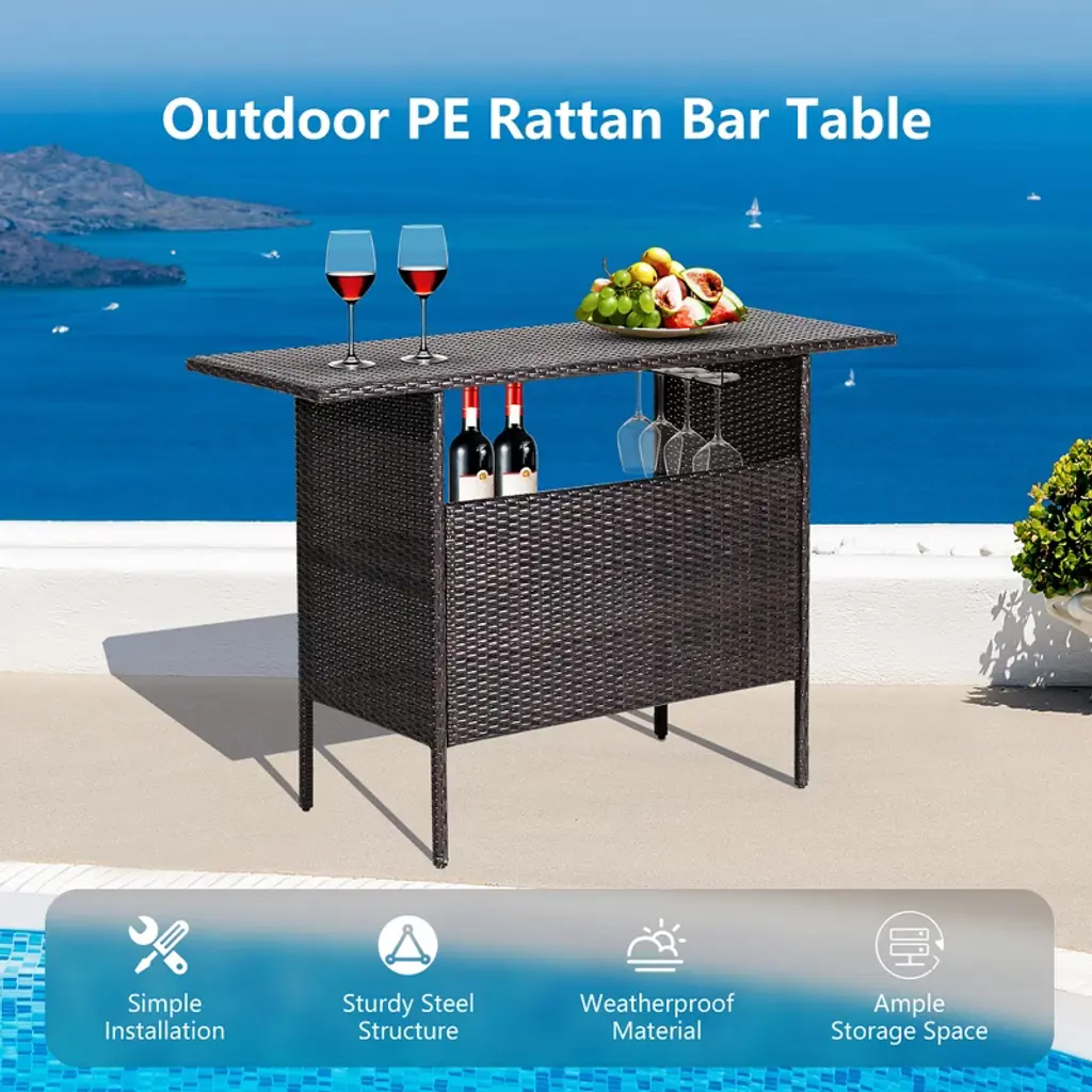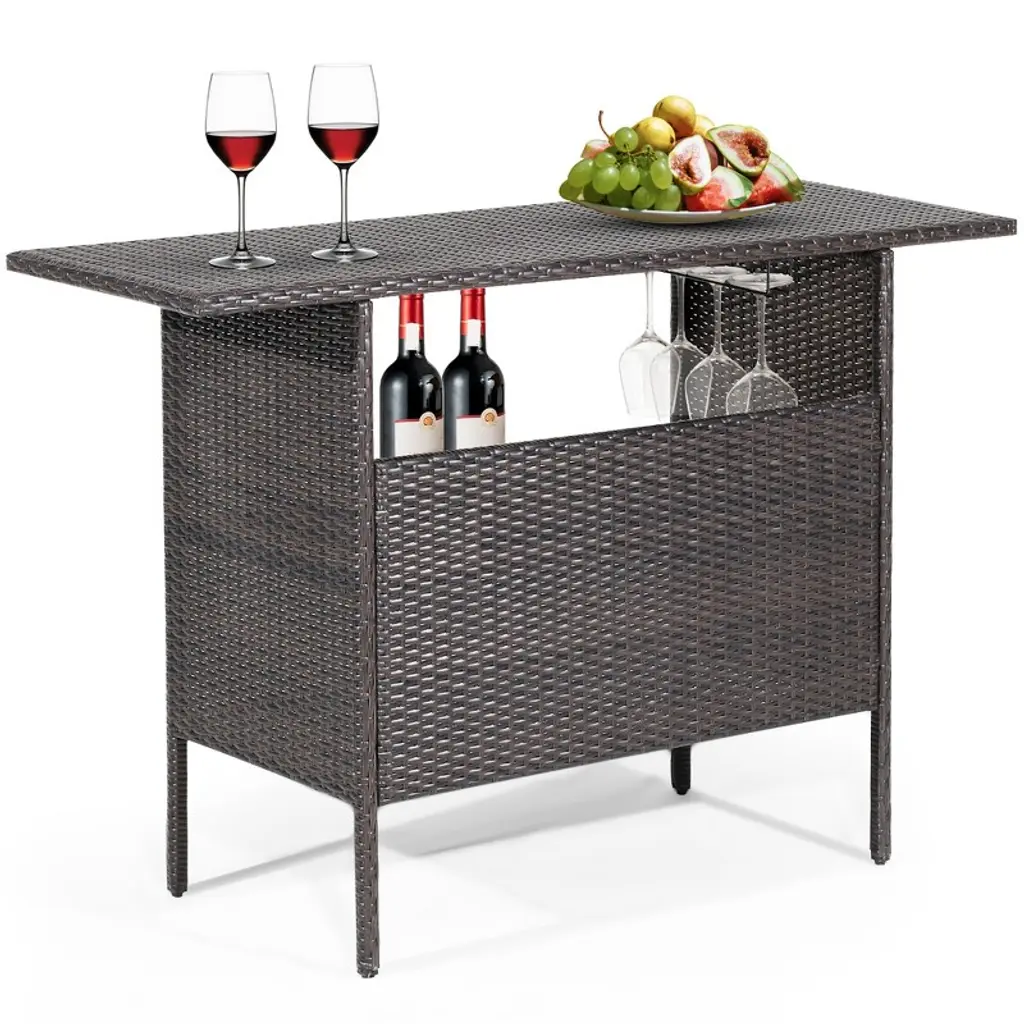Costway Patio Rattan Wicker Bar Height Counter Table Storage Shelf Rail Garden