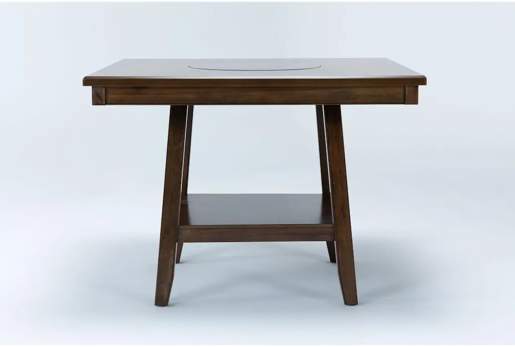 Hyland Brown Ii Grey Square 48" Kitchen Counter Height Table | Lazy Susan | Storage | Shelves | 6 Seat
