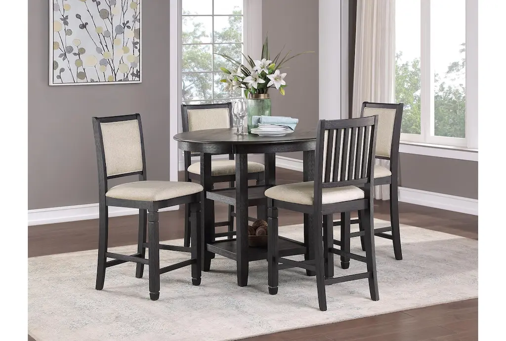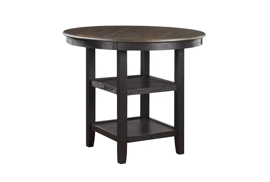 Taylor Wood Round Brown 2 Tone 42" Counter Height Pedestal Table | Shelves | Storage