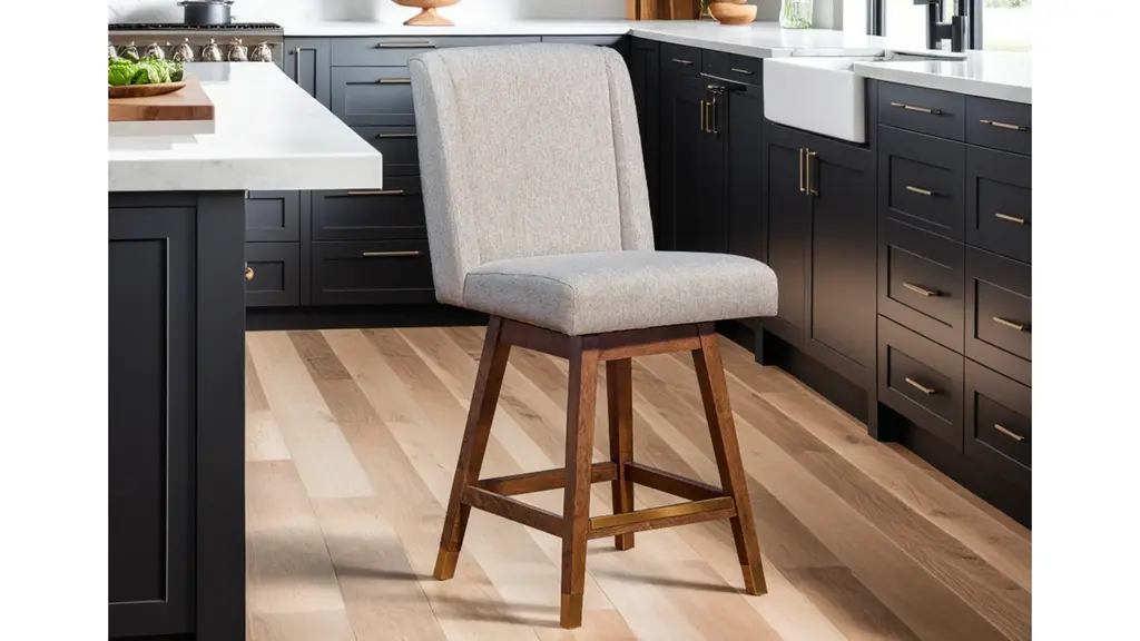 Classic and practical, the Stancoste Swivel Counter Stool is an ideal choice for any home or apartment. Updating your space with new kitchen barstools is an easy way to create a new feel instantly! The Stancoste swivel bar stool has a sturdy 4 leg base constructed from rubberwood. Rubberwood is a durable hardwood belonging to the maple family. Its dense grain character makes it a stable construction material that is naturally resistant to fungus and bacteria. The strong rubberwood frame is complimented by rich polyester upholstery. The long-term durability of polyester makes it an ideal choice of stool upholstery fabric for families with children and pets. Polyester upholstery is water repellent, stain resistant, budget friendly, and less prone to discoloration. Counter or bar height stools should combine style with convenience. The 180-degree memory swivel or _spin-back' seat allows you to swivel either way and the seat always returns to forward facing position when you stand up.