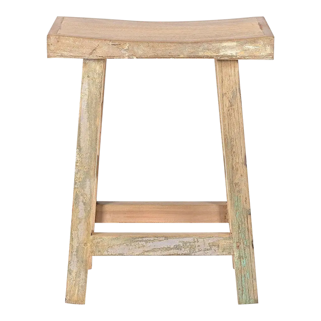 Dimensions: 17" W X 11" D X 24" H Introducing our Reclaimed Wood Rustic Farmhouse Style Counter Stool, standing at a height of 24 inches to perfectly accentuate your kitchen counter. Crafted from authentic reclaimed wood sourced from old doors, each stool carries a unique history and character, making it a one-of-a-kind addition to your home. The Solid Wood Kitchen Counter Seat boasts a sturdy and durable construction, ensuring longevity while adding a touch of rustic charm to your space. The distressed white-washed finish not only enhances the vintage appeal but also creates a subtle yet eye-catching contrast, making it a versatile piece that effortlessly complements contemporary farmhouse-style homes. With its painted patina and modern design elements, this counter stool effortlessly blends the warmth of reclaimed wood with a touch of contemporary sophistication. The careful craftsmanship and attention to detail shine through, making it not just a functional seating option but also a statement piece in your kitchen or dining area. Bring the allure of history, the warmth of reclaimed wood, and the modern aesthetics of the farmhouse style into your home with our Reclaimed Wood Rustic Farmhouse Style Counter Stool. Elevate your living space with a piece that reflects both timeless design and eco-friendly sensibility. Features: • 100% solid wood counter stool • Entirely handmade by expert artisans • Distressed white washed finish • Rustic modern Farmhouse style • Sustainable furniture • Heirloom quality This piece utilizes re-claimed woods and is handcrafted by artisans using basic hand tools. Due to the nature of this creative process, you can expect to find variations in their finish and color. Imperfections like uneven planks, knots, warping, cracks, splits, holes, discoloration, dents, scratches, wood repairs etc. are normal and considered enhancements to the nature of our collection. The listed dimensions are measured from one extremity to the other, height wise and width wise. Please contact us for specific dimensions. Construction: 100% Solid Wood Please note that color of products shown may vary slightly from their actual color due to monitor display settings or photography studio lighting. Please contact us for additional pictures. Thanks for looking! We enjoy serving you.