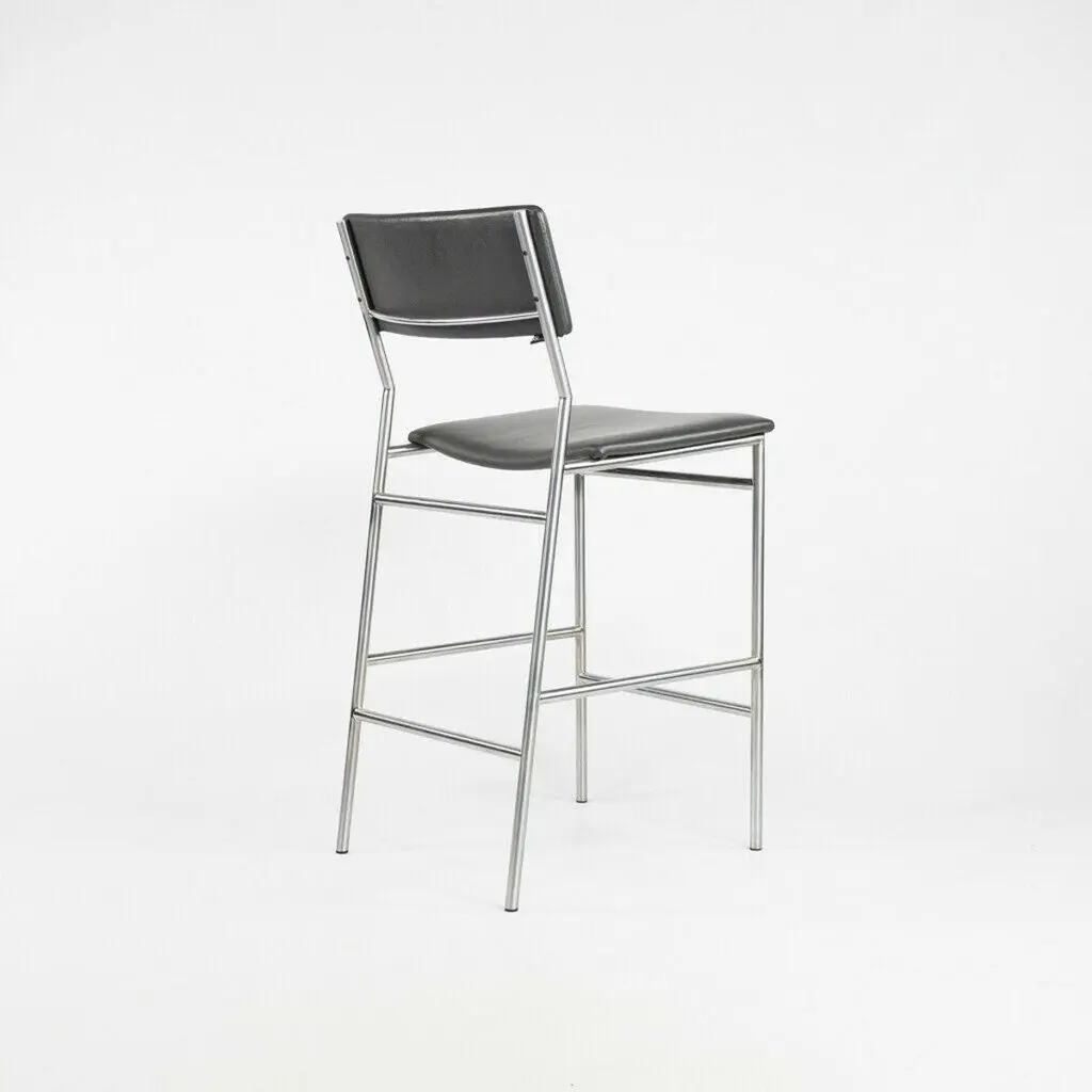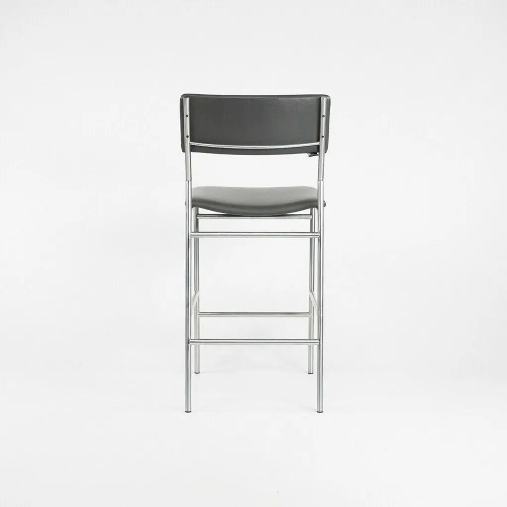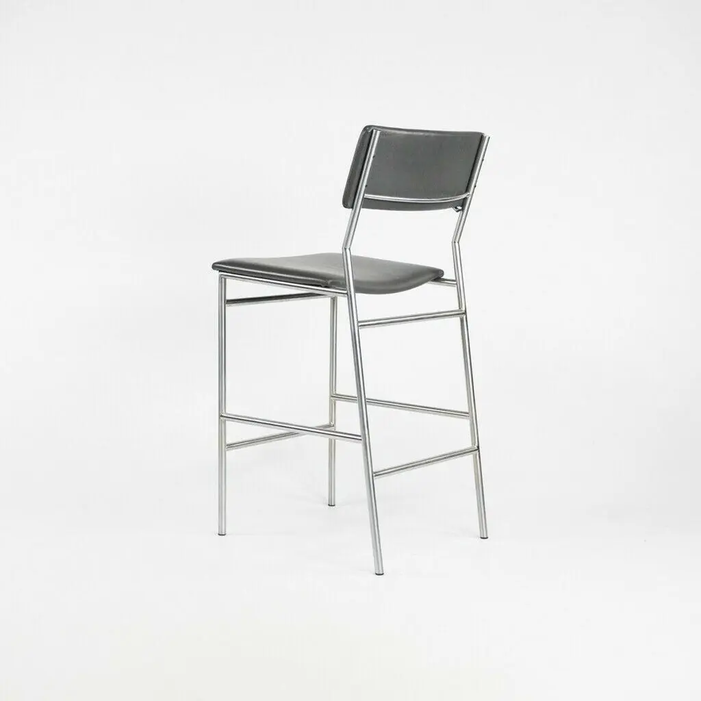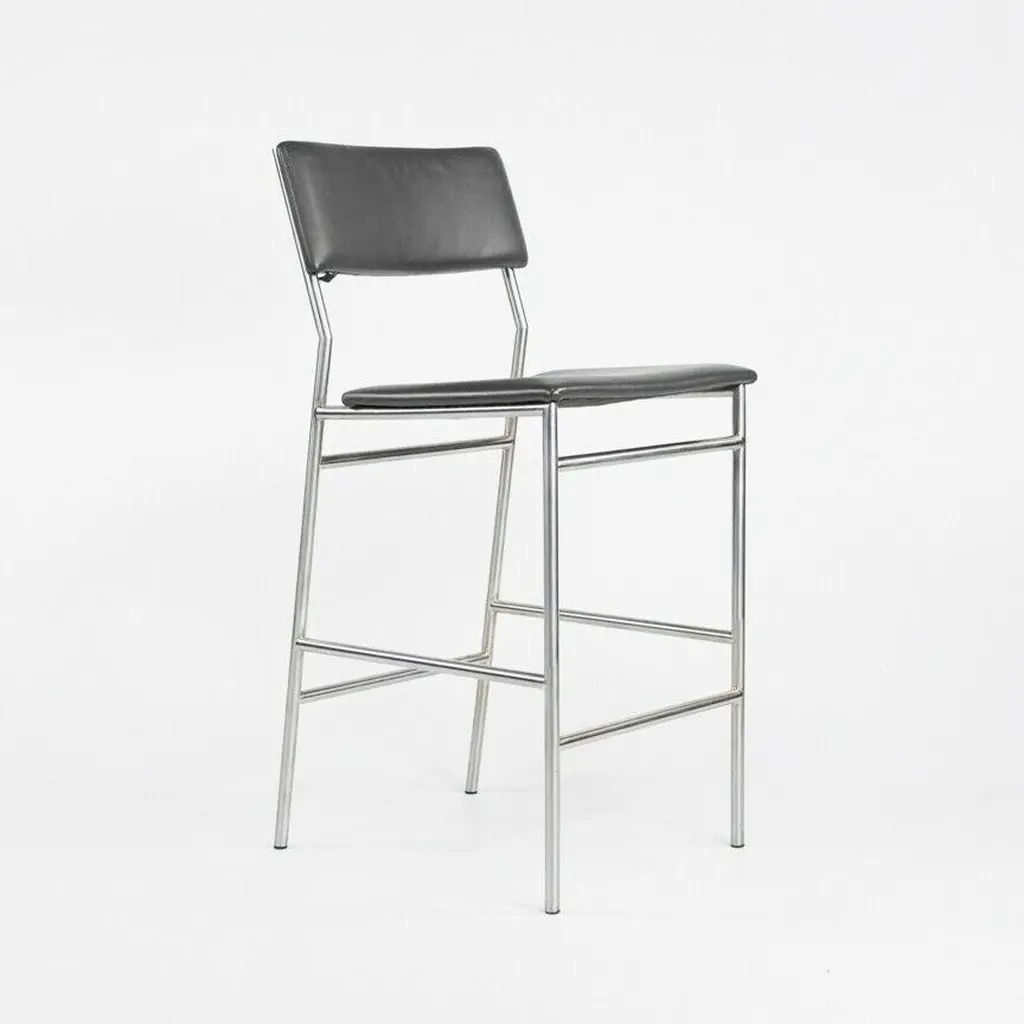 Listed for sale is a single (the price listed is for each stool, though multiples stools are available) SB07 counter stool, designed by Martin Visser and produced by Spectrum in The Netherlands. This design was first produced in 1960 by Visser and has more recently been reintroduced. The stools are beautifully constructed from stainless steel with exceptional detailing. The seat and back are upholstered in gray leather. This group came from the executive suite of an investment firm in New York among numerous other high design works. The furniture was specified by SOM architects (and the office was designed by their firm also). Condition is terrific with only minor wear from use.Each stool measures 37.5 inches tall by 17 inches wide and 17 inches deep. The Seat height is 26.4 inches. This is the counter height version, not the bar height version.As noted, the price listed is for one stool. Twelve stools are available.