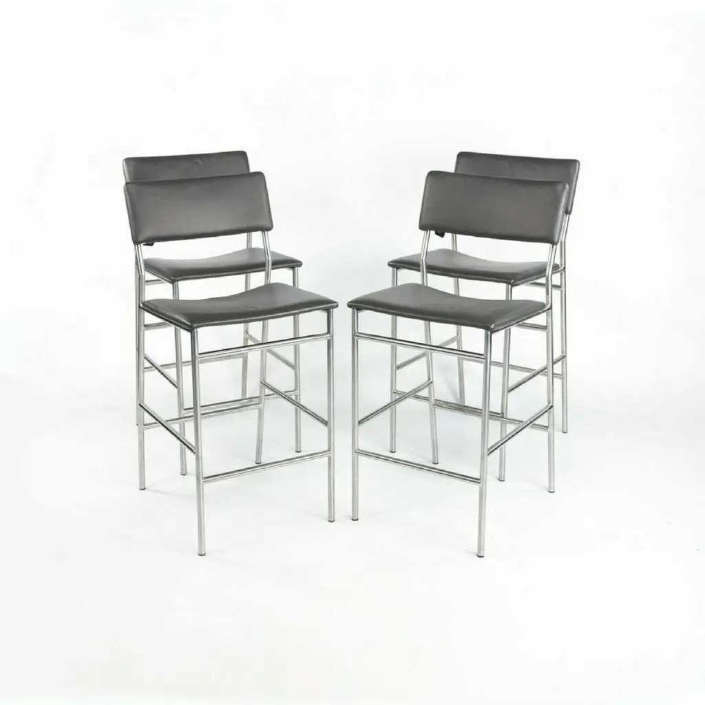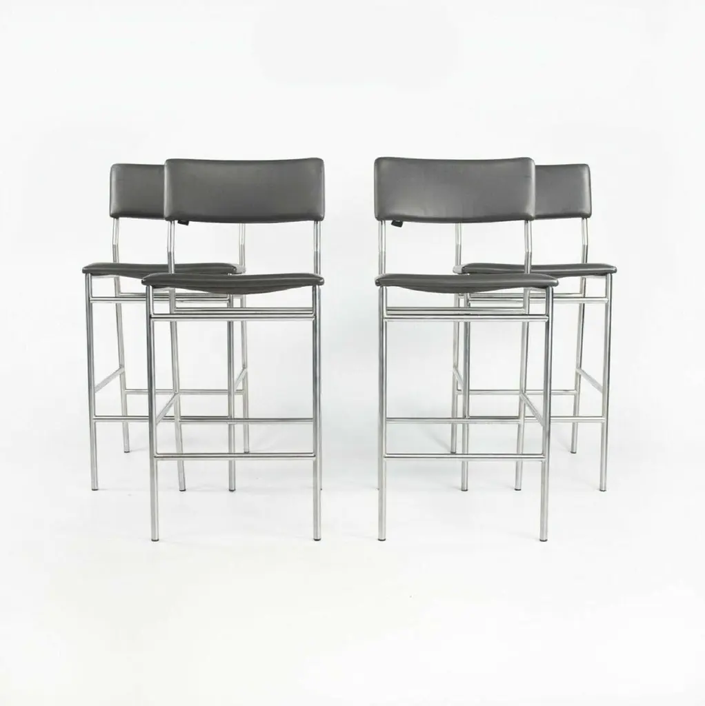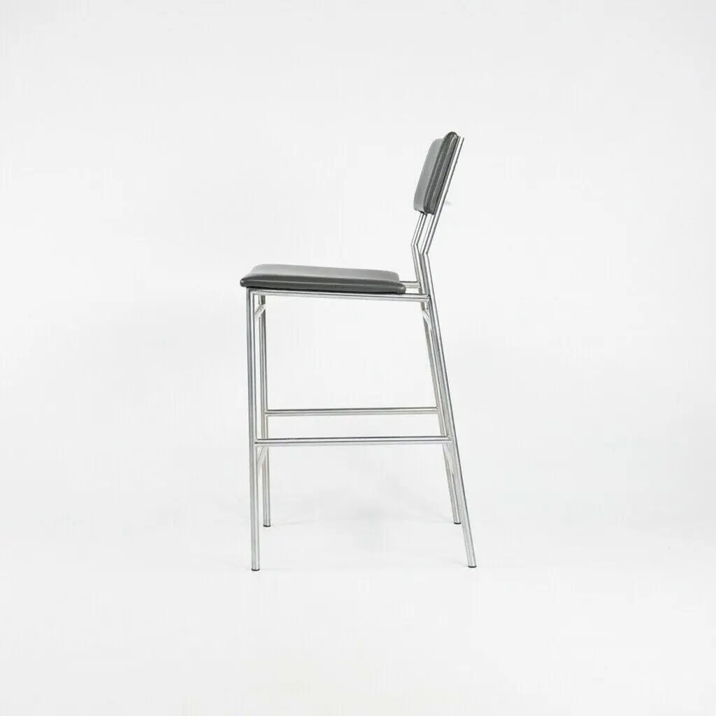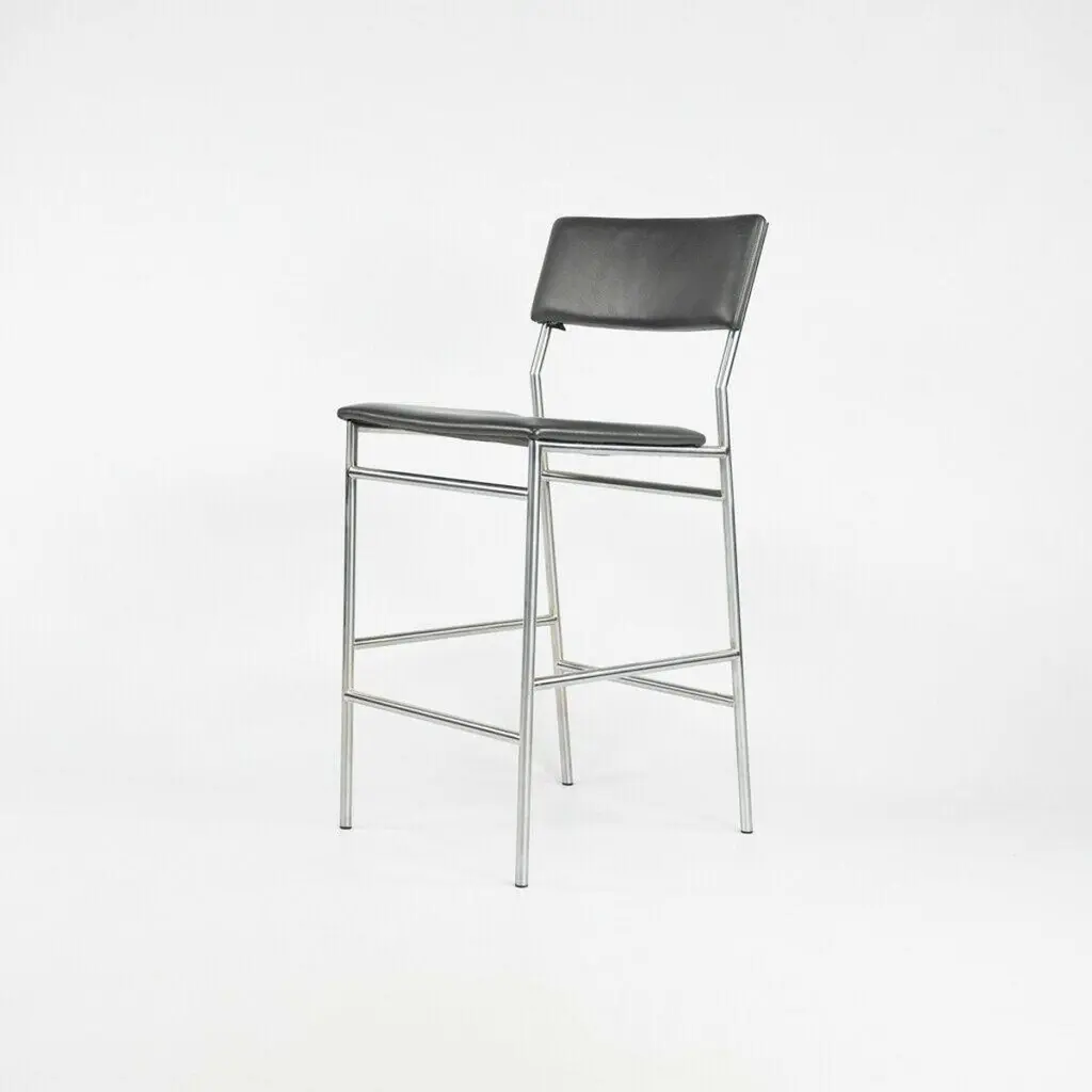 Listed for sale is a single (the price listed is for each stool, though multiples stools are available) SB07 counter stool, designed by Martin Visser and produced by Spectrum in The Netherlands. This design was first produced in 1960 by Visser and has more recently been reintroduced. The stools are beautifully constructed from stainless steel with exceptional detailing. The seat and back are upholstered in gray leather. This group came from the executive suite of an investment firm in New York among numerous other high design works. The furniture was specified by SOM architects (and the office was designed by their firm also). Condition is terrific with only minor wear from use.Each stool measures 37.5 inches tall by 17 inches wide and 17 inches deep. The Seat height is 26.4 inches. This is the counter height version, not the bar height version.As noted, the price listed is for one stool. Twelve stools are available.