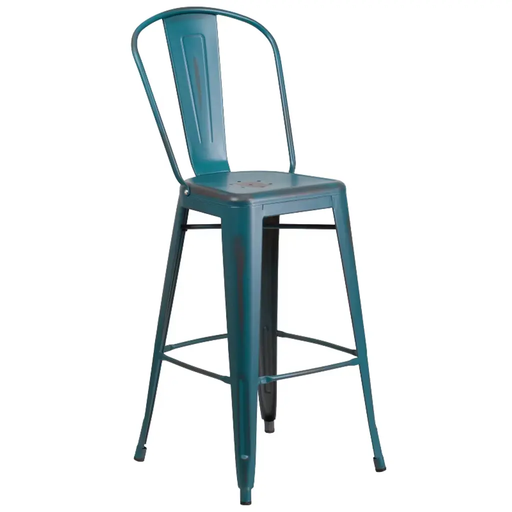 The high back, Bistro style counter stool will give your dining room or bar decor a refreshing rustic feel with its metal and wood features.This stylish metal stool features a curved back with a vertical slat and a cross brace under the seat for added support and stability. A wood seat adds comfort and beauty. The lower support brace doubles as a footrest, and the glides protect your floor by sliding smoothly when moving it.Designed for both commercial and residential use, this trend-setting setting counter height stool is a great choice for your restaurant's dining area or your home bar.