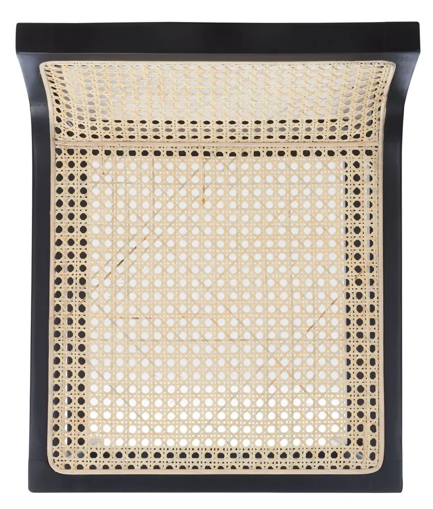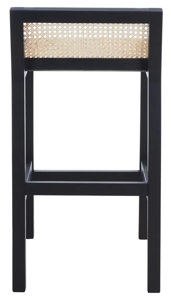 The woven cane seat and back give this counter stool a tropical airiness that complements its streamlined silhouette.