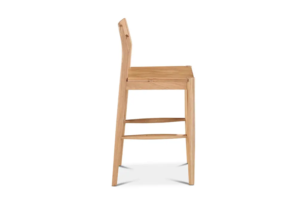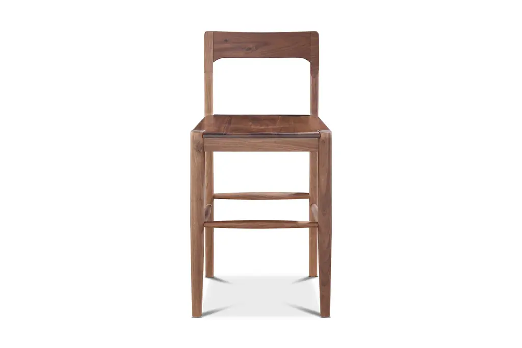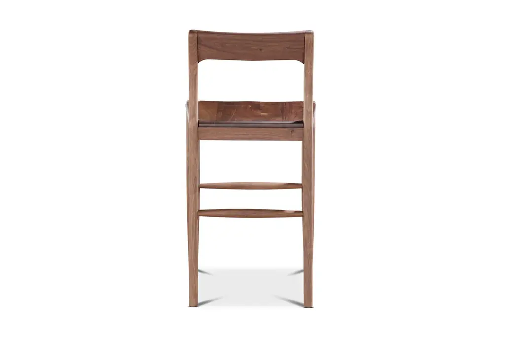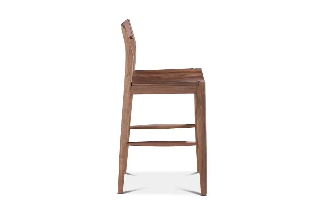 Add contemporary charm and timeless style to your kitchen with the Adler Counter Stool. Crafted from solid walnut or oak, it's available in a versatile natural or black finish, each showing off the unique characteristics of the wood grain texture. This stool features a curved open backrest for support and comfort.