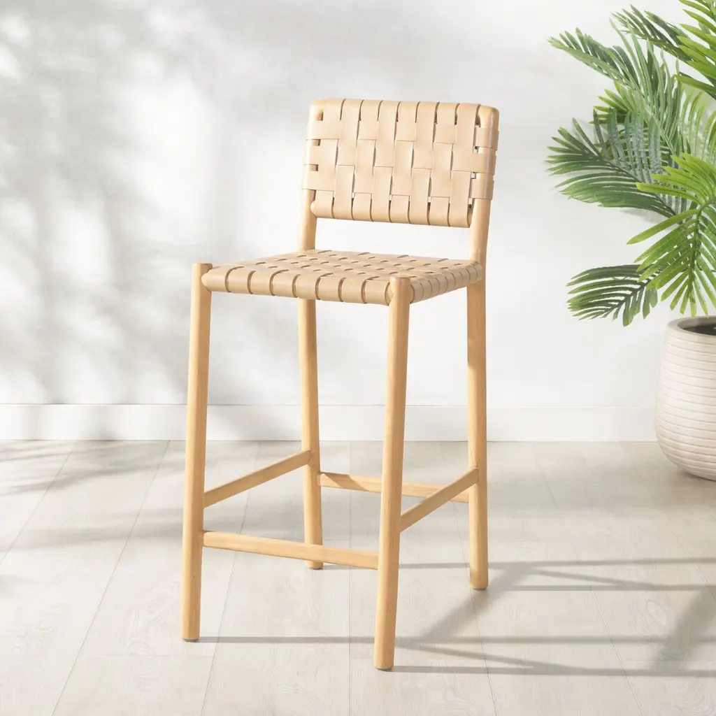 Elevate your home decor with the Aedricel Woven Leather Counter Stool, a perfect blend of style and comfort. Crafted with precision, this furniture piece features a unique construction of robust solid Sungkai wood, ensuring a stable and sturdy design built for regular use. The woven seat, made from genuine top grain leather, is soft to the touch and visually appealing, known for its supple texture and durability. The subtle sheen of this authentic leather gives the stool a luxurious finish. Whether you're looking for an elegant seating solution at your kitchen counter or a classy accent piece for your mini bar, the Aedricel Woven Leather Counter Stool is an ideal choice. Experience the fine fusion of comfort and style with this remarkable furniture piece!