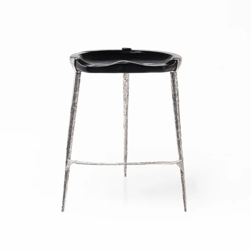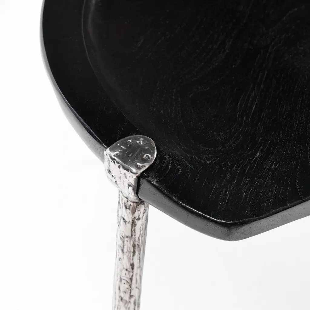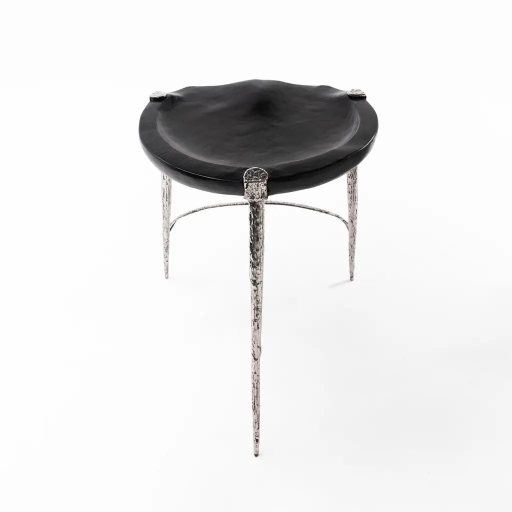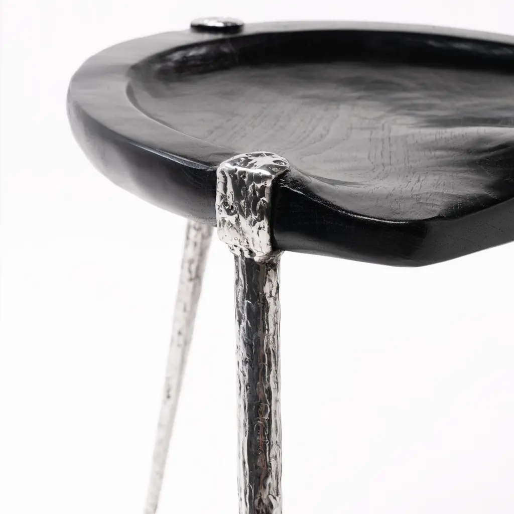 This sculptural stool features hand forged fragments of stainless steel fused together to create an organic aesthetic that reflects textures found in plant formations. The sculpted seat is hand carved and features a burnt black finish, created using the shou sugi ban method. Odditi pieces are handmade to order, unless listed as in stock.----------Odditi takes a curious look at the relationship between nature and humanity, exploring our inner and outer landscapes and creating objects that live between the worlds of art and design.