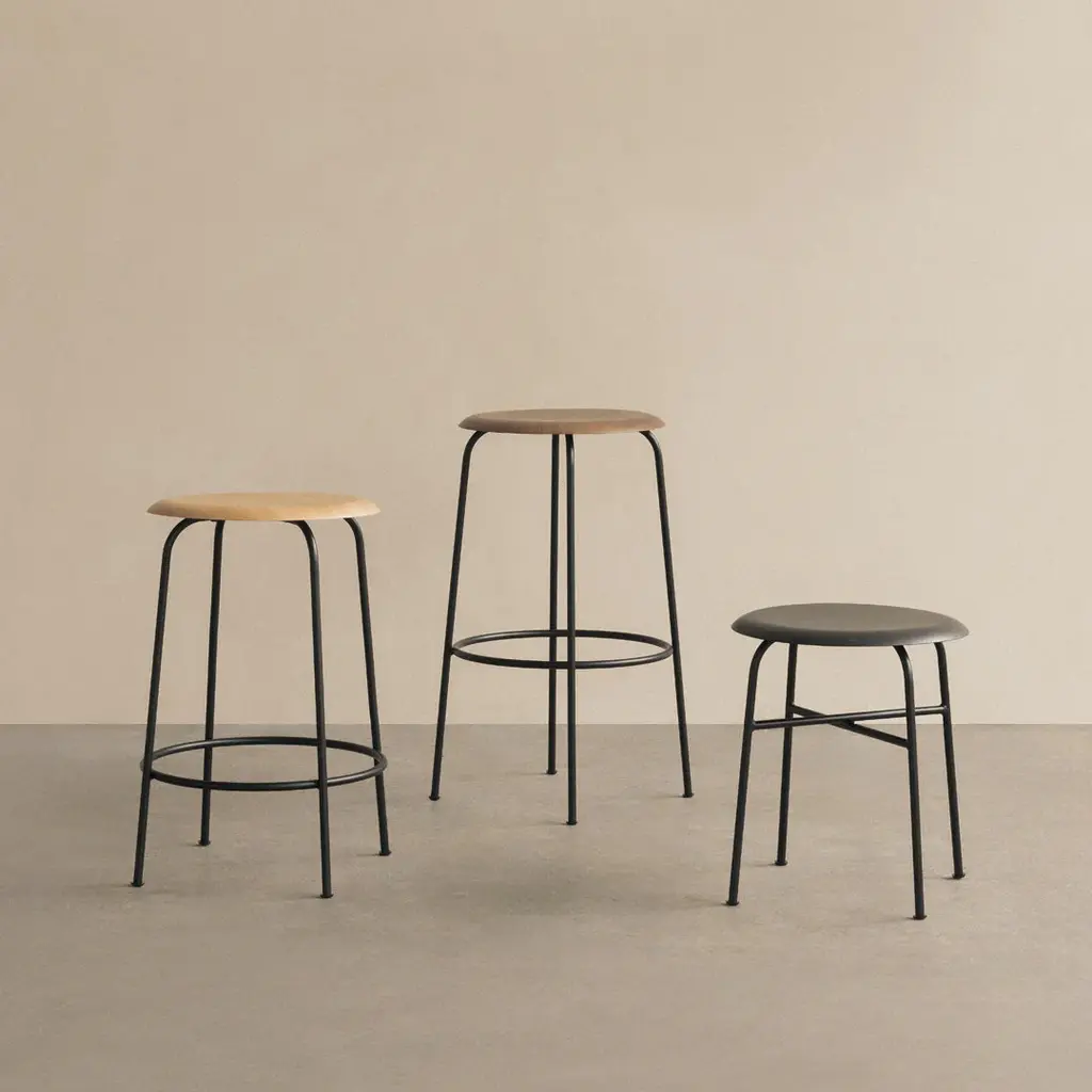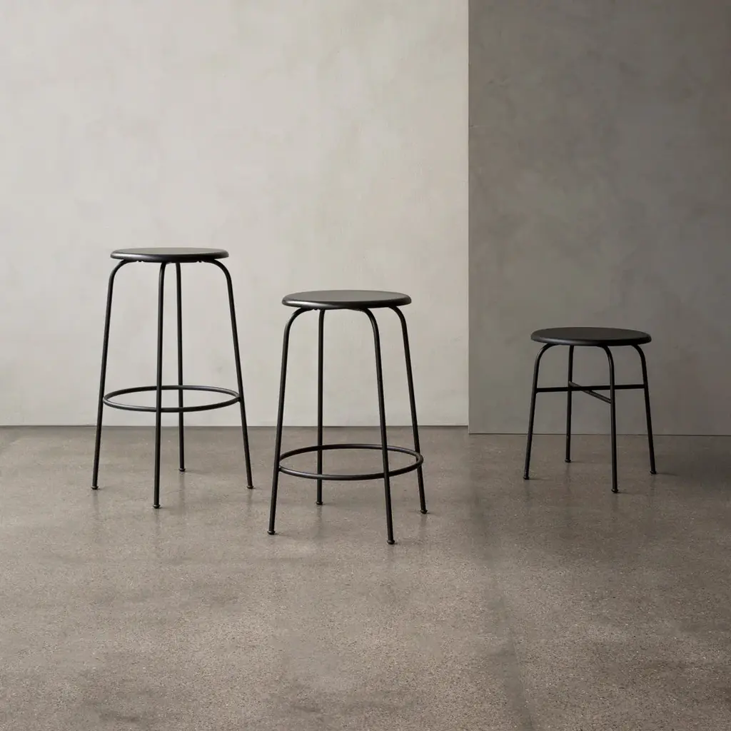 A study of unity between functionalism and minimalism, the Afteroom Stool is the ultimate expression of the Bauhaus-inspired Afteroom series. It is a stool cut back to the absolute necessities, yet it still operates as an integral part of an overall space, adding strong, clean lines to any room. The Afteroom Stool is rendered in black Powder-Coated steel and comes with or without an upholstered seat. The stool is available in three heights, a stool, counter stool and bar stool, making it easy to slide up against a bar or keep in the home as small-space or additional seating. In keeping with the original Afteroom chair series, this extension of the hugely popular line is bound to be embraced by those looking to enhance the seating in their commercial or residential spaces. Upholstered and bar-level versions followed. The newly-released Afteroom Stool takes the series a step further, to a place of ultimate minimalism and easy comfort. With clean lines and a sturdy base, the Afteroom Stool is as much at home pulled up to the window of a coffee shop as it is around the dinner table.