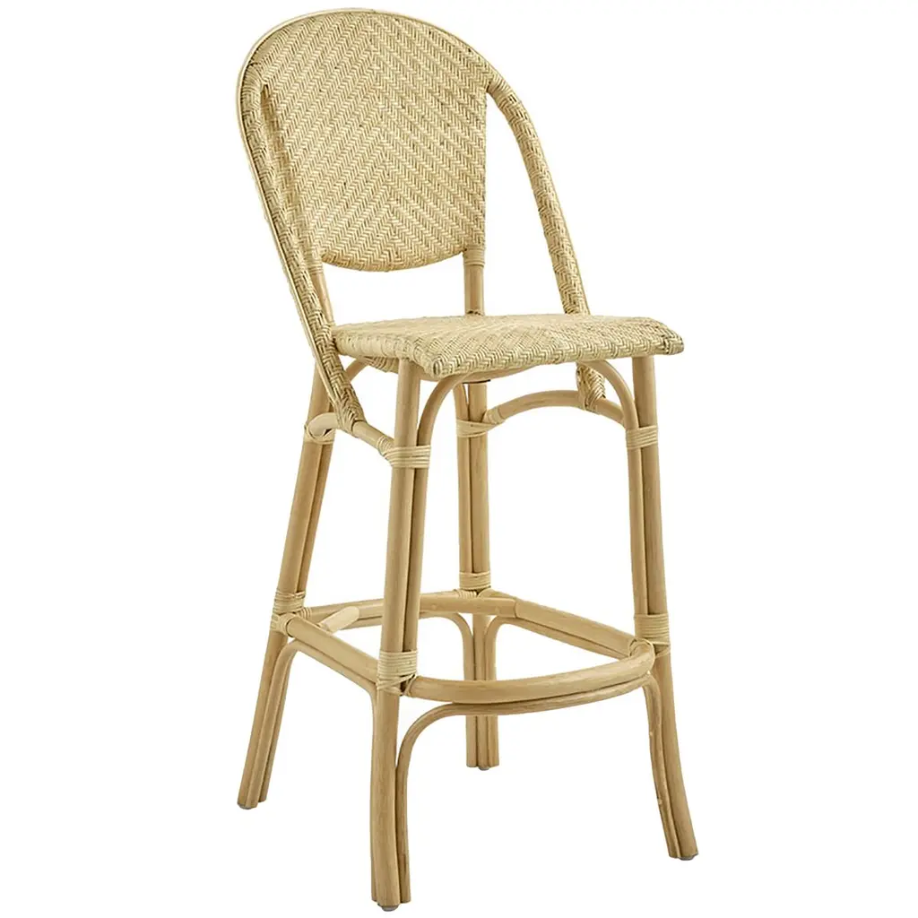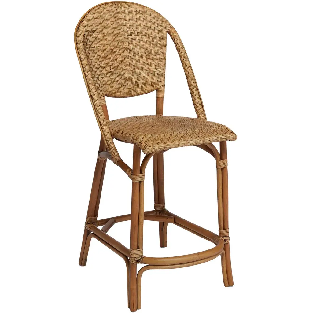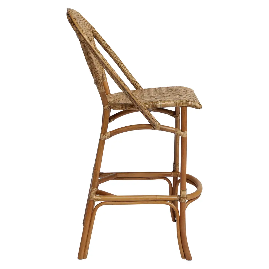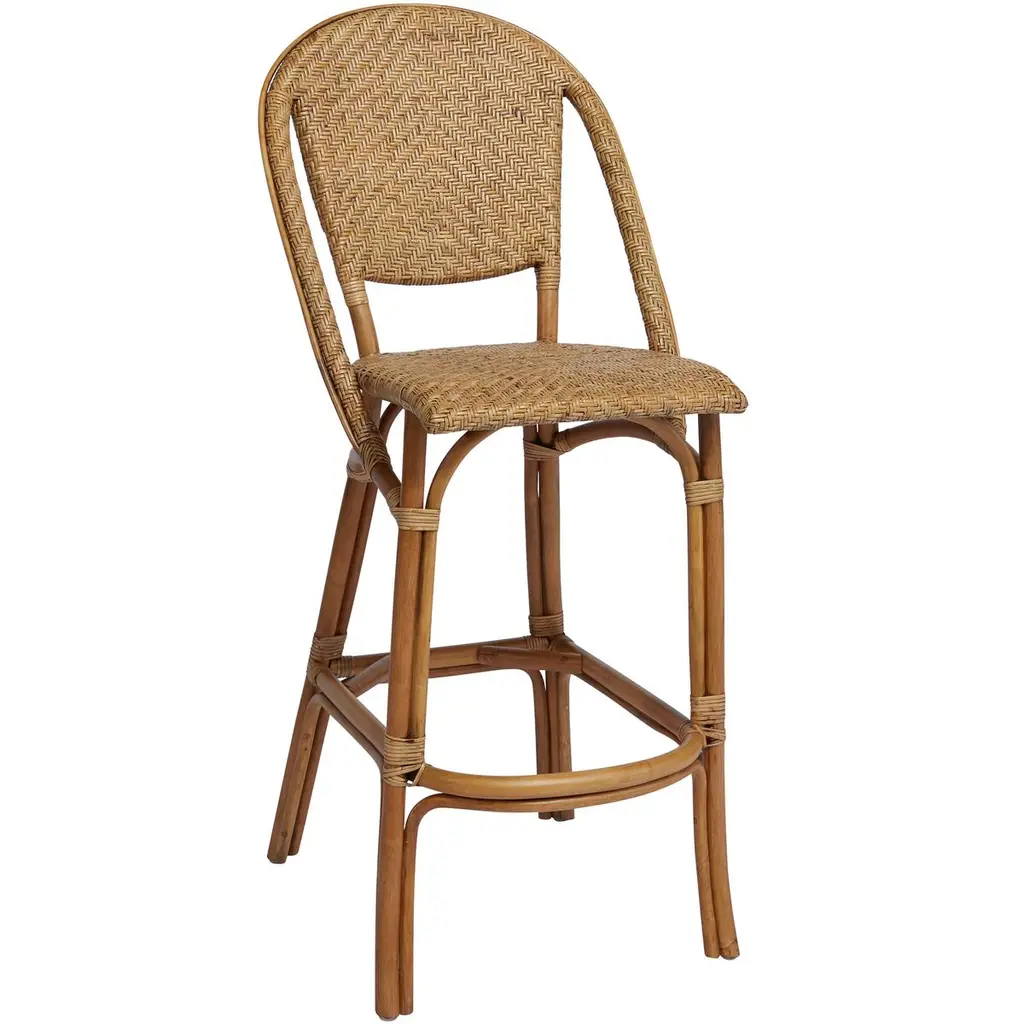 Inspired by Parisian bistro barstools, the Alanis Rattan Stool is an elegant complement a contemporary bar or dining counter. Handcrafted of sustainably grown rattan, the design showcases a herringbone weave on the back, arms and chair seat. Reinforced legs and footrest add to the durability of this charming stool, which brings an elegant update to your home bar or elevate the seating in a café, bar or restaurant. Features