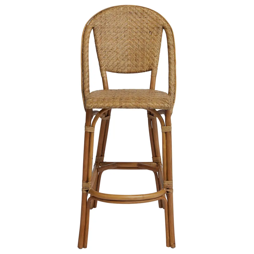 Inspired by Parisian bistro barstools, the Alanis Rattan Stool is an elegant complement a contemporary bar or dining counter. Handcrafted of sustainably grown rattan, the design showcases a herringbone weave on the back, arms and chair seat. Reinforced legs and footrest add to the durability of this charming stool, which brings an elegant update to your home bar or elevate the seating in a café, bar or restaurant. Features