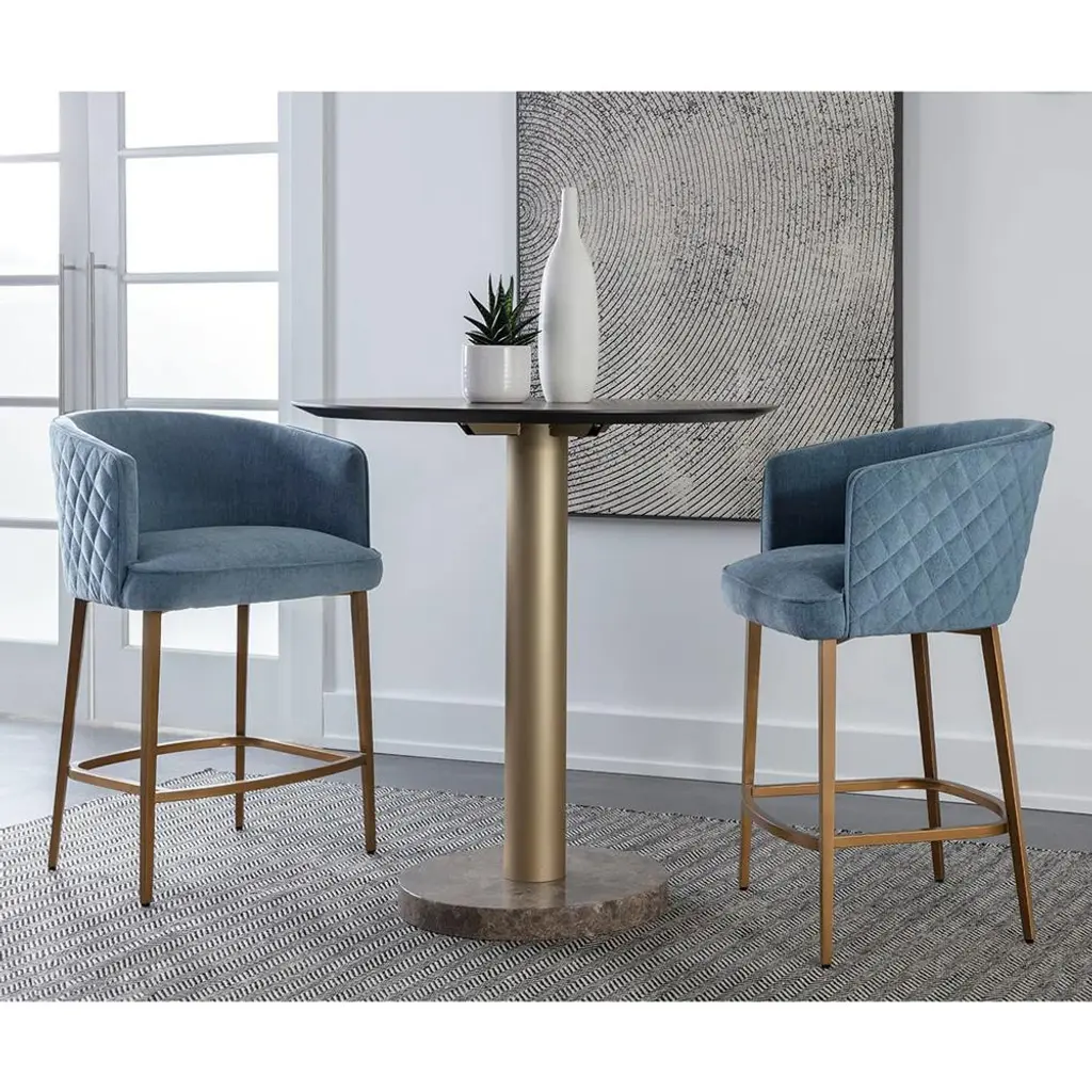 Alesha Regency Iceberg Upholstered Brass Iron Counter Stool