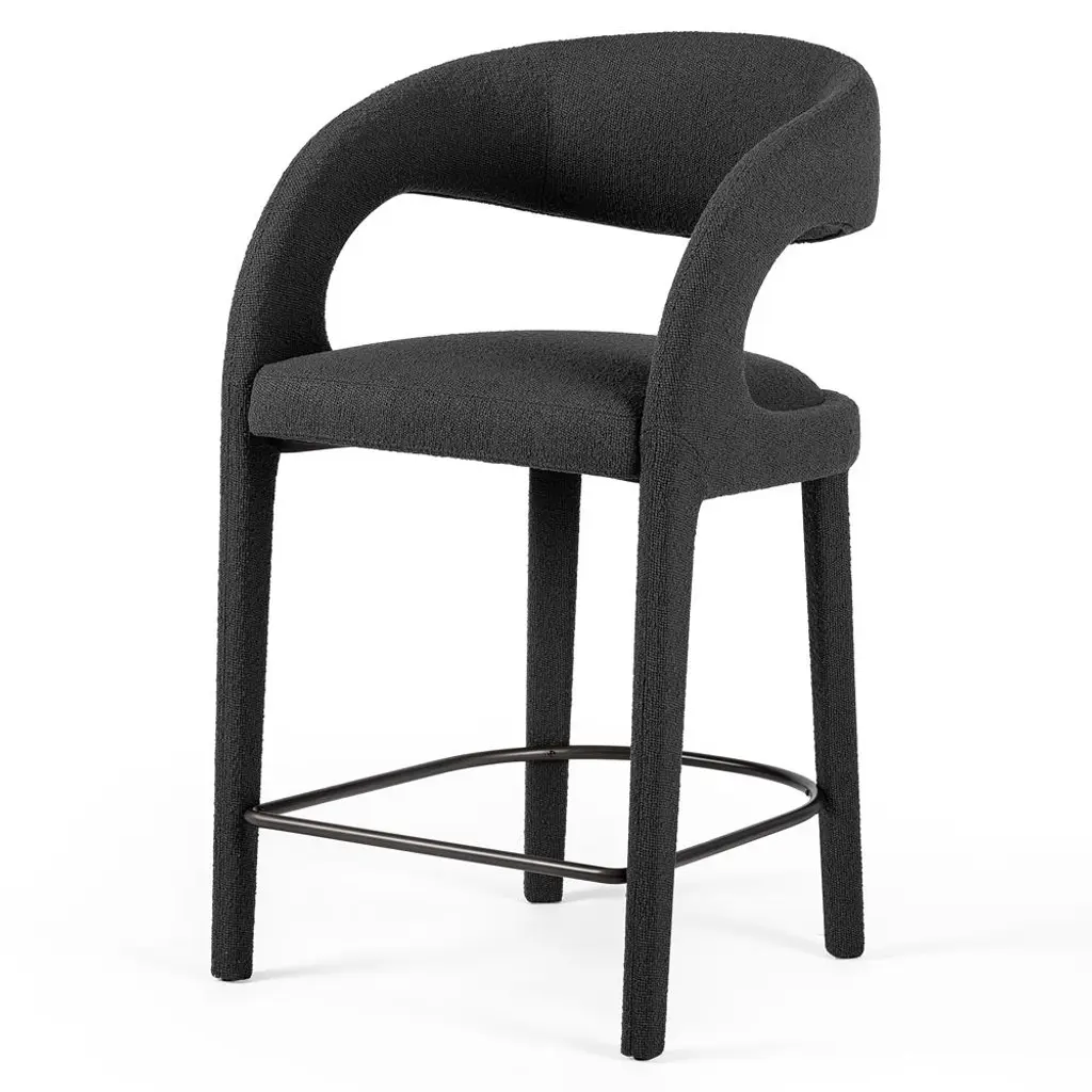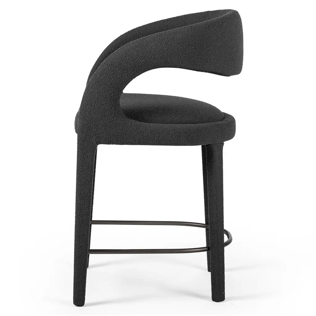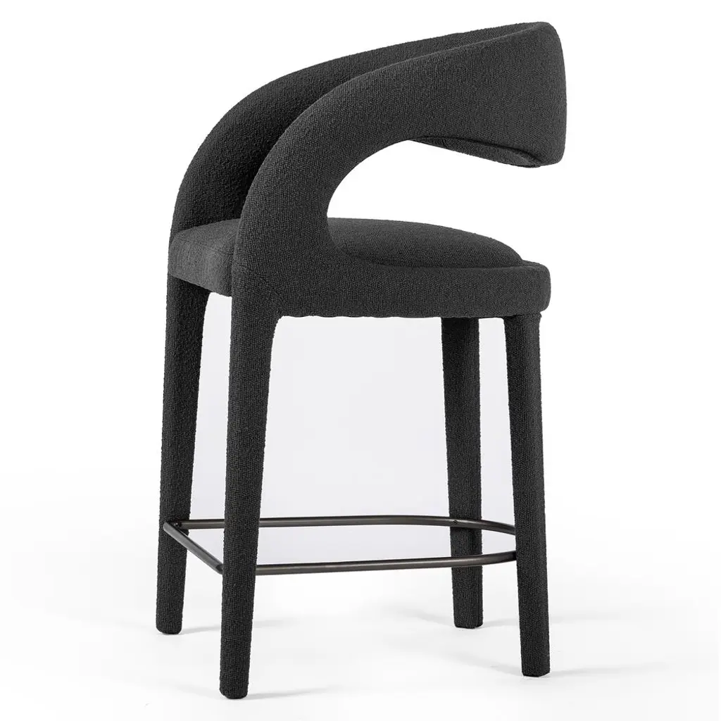 Alexander Mid Century Charcoal Black Performance Boucle Iron Frame Counter Stool