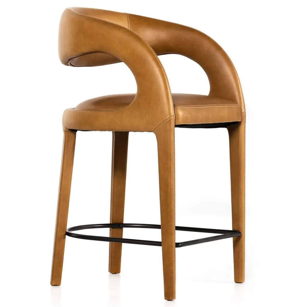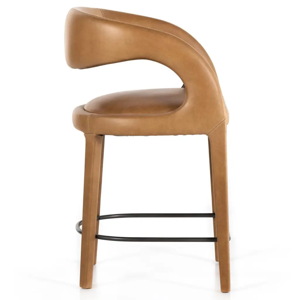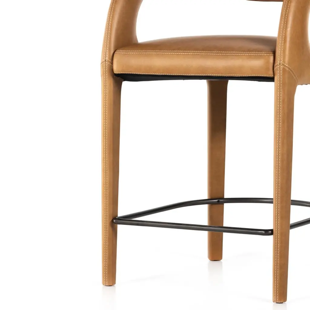 Alexander Mid Century Modern Brown Leather Upholstered Black Iron Counter Stool