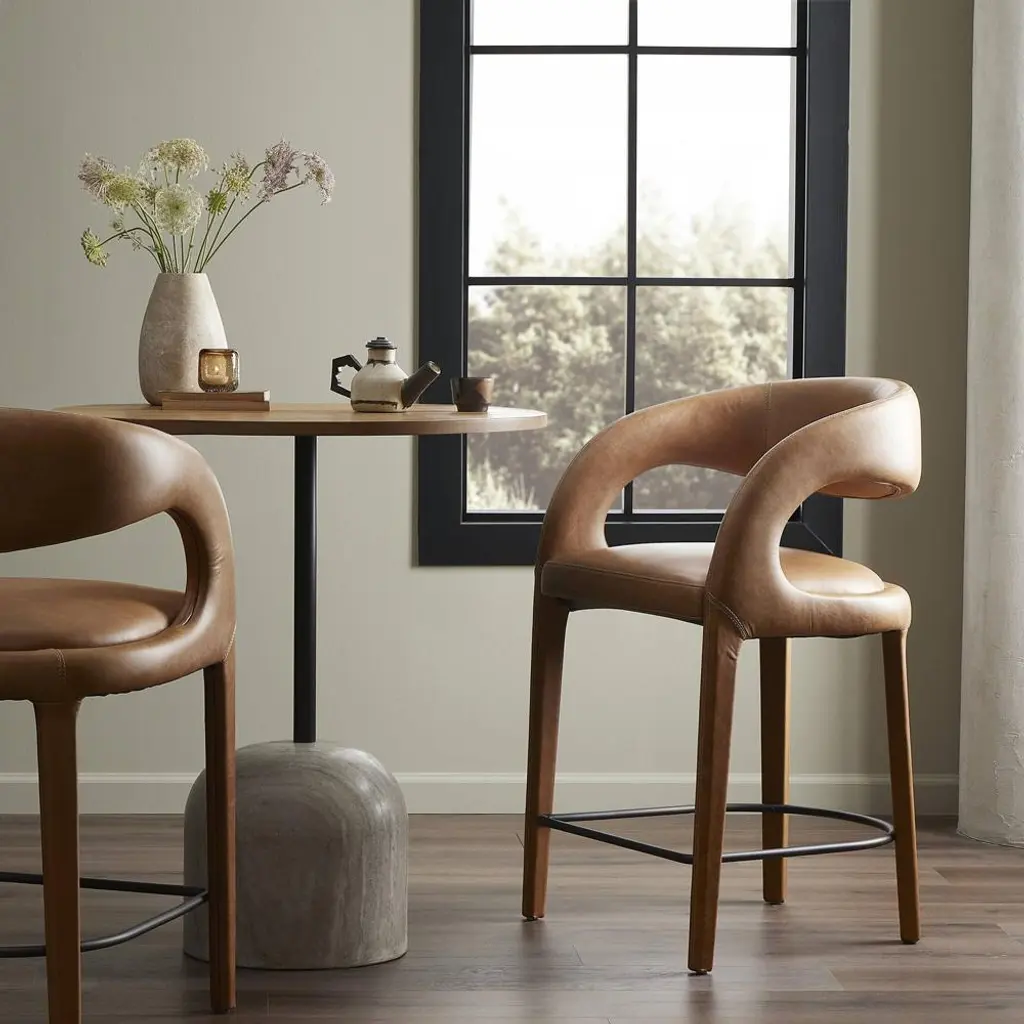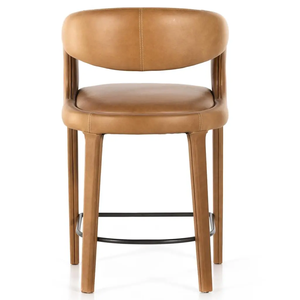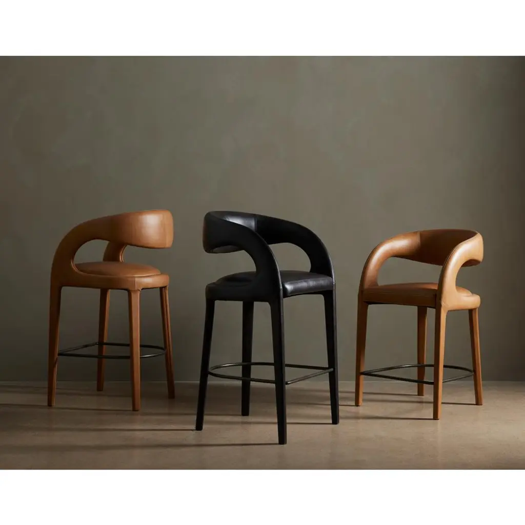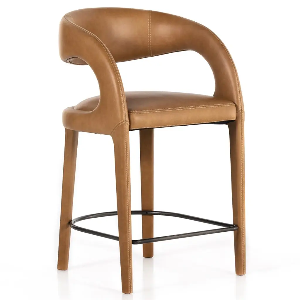 Alexander Mid Century Modern Brown Leather Upholstered Black Iron Counter Stool